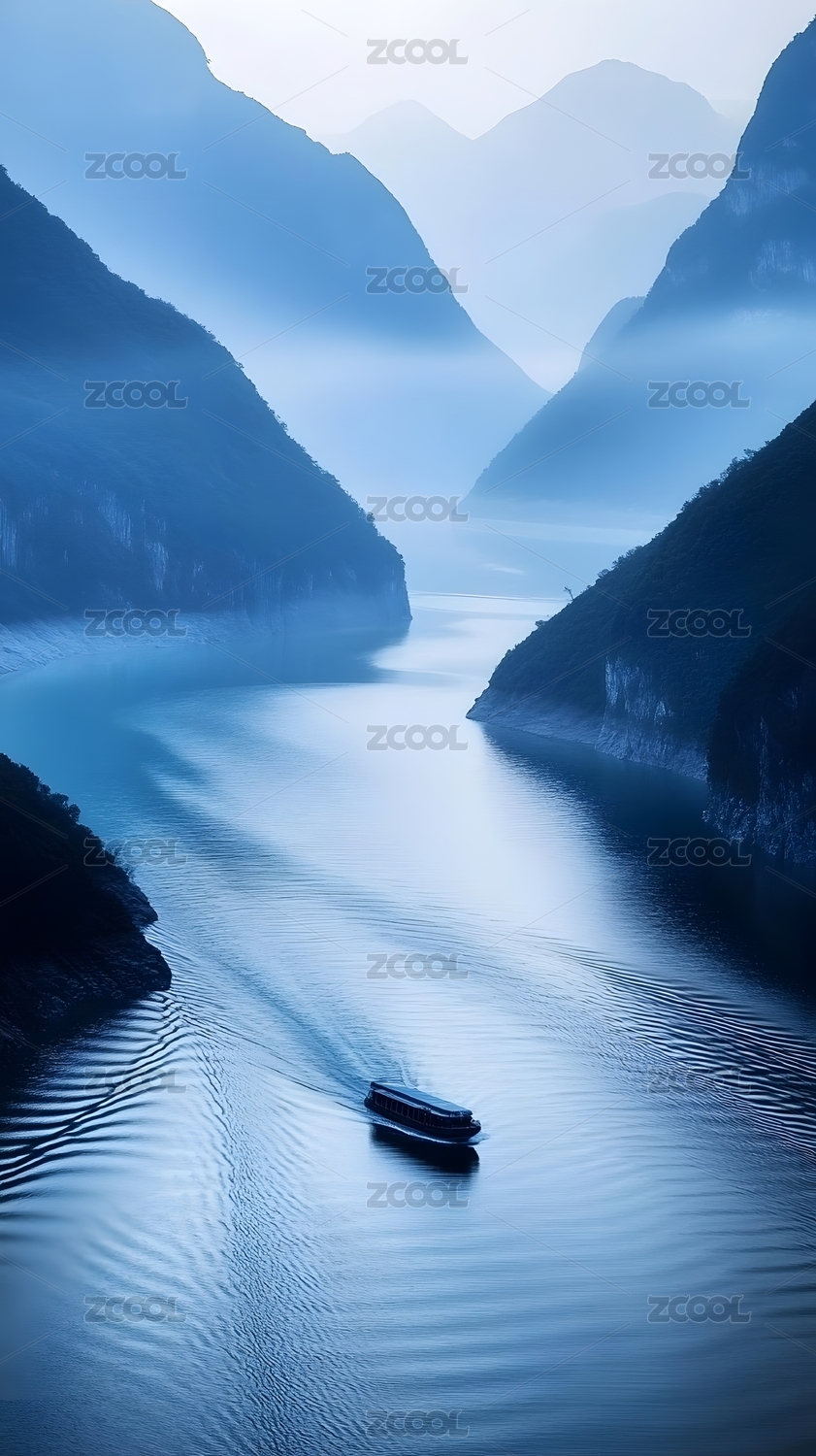 中国重庆奉节县长江瞿塘峡峡谷中的航行景致