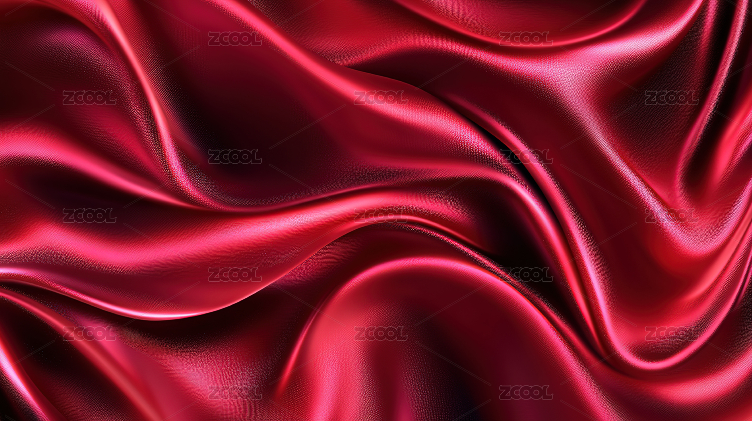 红色绸缎波浪海报背景中国红丝绸纹理背景