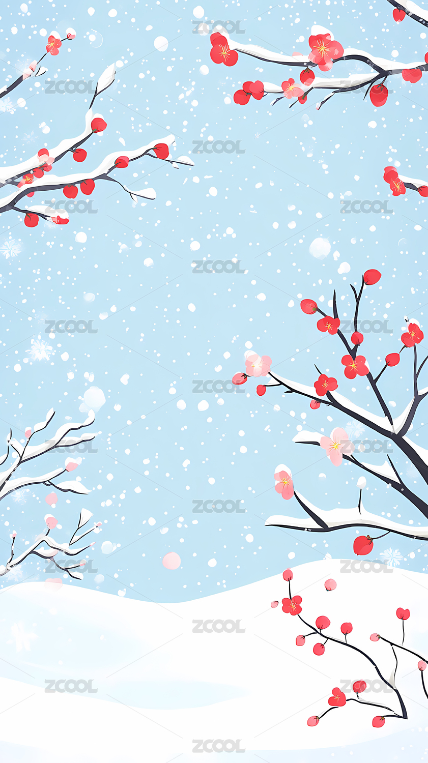 立冬节气下雪梅花开放意境冬景国风国潮插画