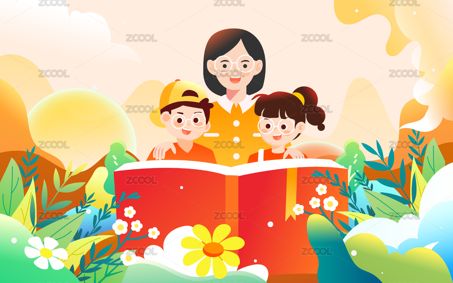 开学季亲子教育阅读世界读书日亲情陪伴插画