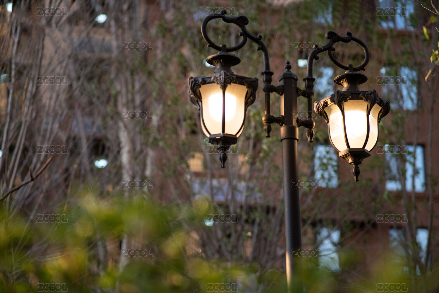 美丽的高端小区室外园林景观路灯照片