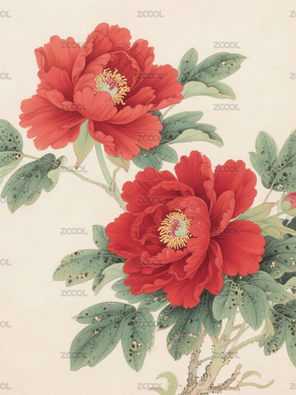 中国风牡丹花卉图
