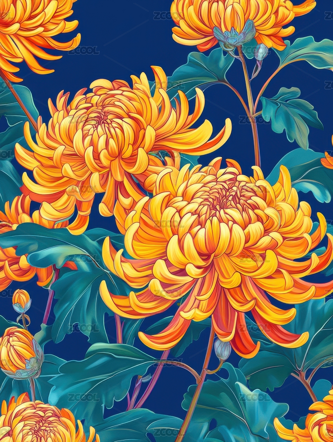 重阳时节美丽菊花插画重阳节中国风赏菊插图