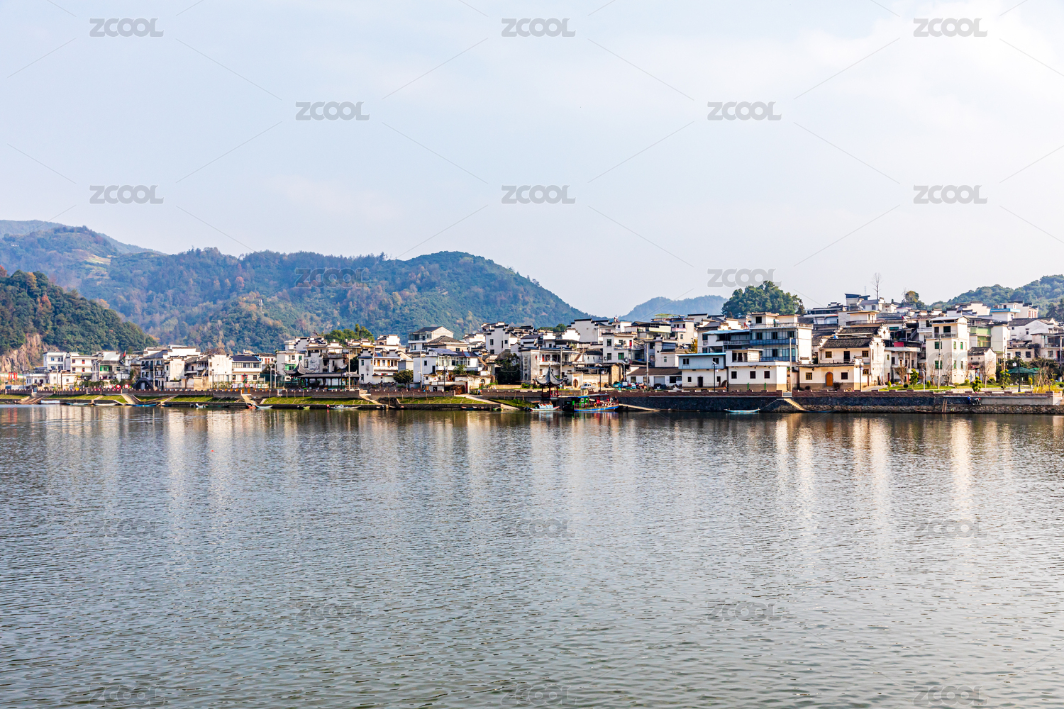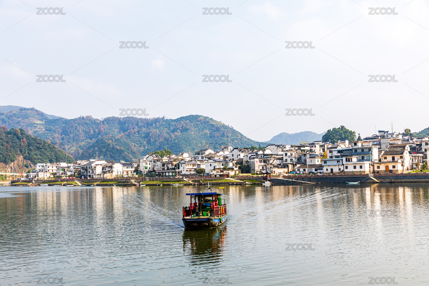 徽州,十里画廊,青山绿水,自然风景,新安江,沿江两岸,乡村,房屋,徽派山水,小船