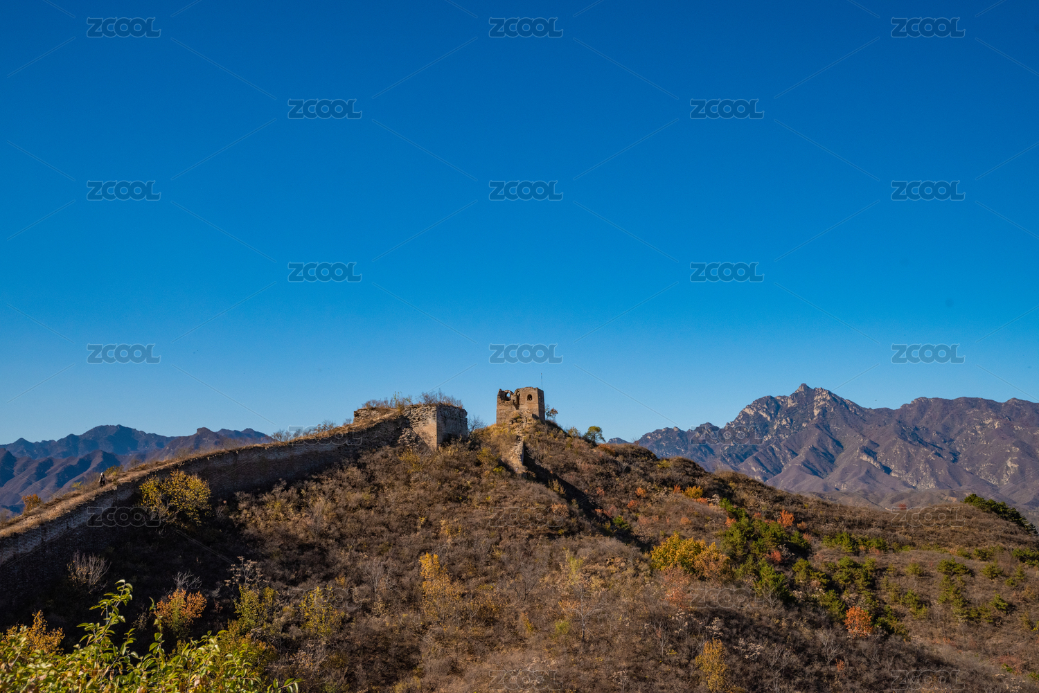 蓝天白云下的中国长城蜿蜒盘旋丛山峻岭