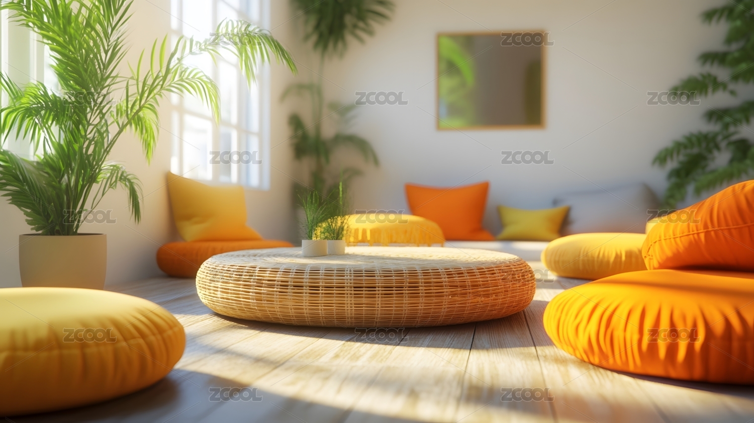 藤篮抱枕点缀的温馨客厅