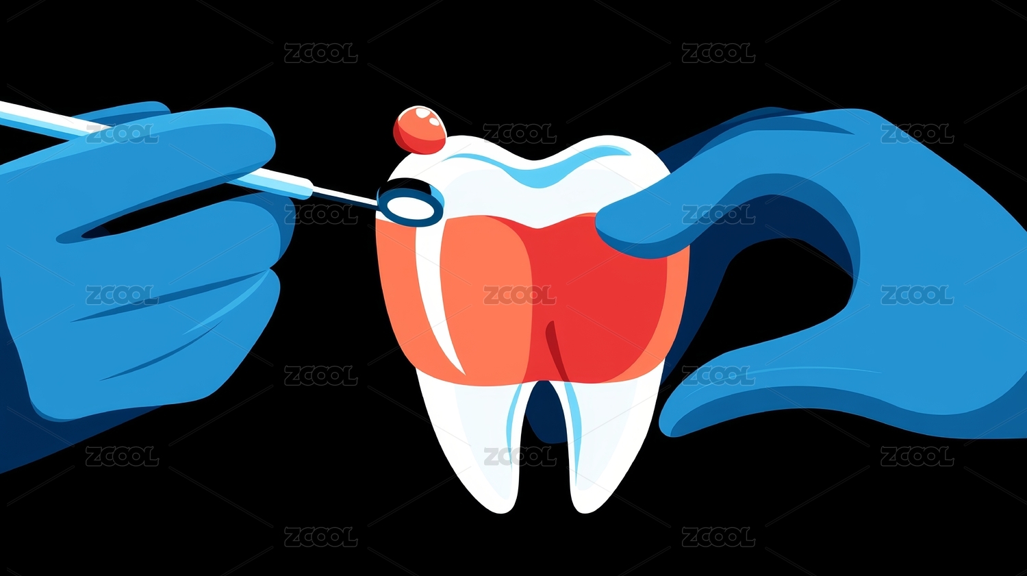 手绘爱牙日牙齿保健牙医检查口腔矢量插画