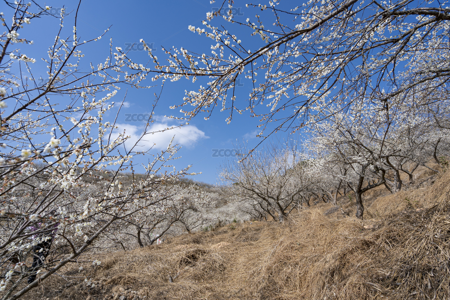 蓝天下盛开的白色梅花,中国福建上杭