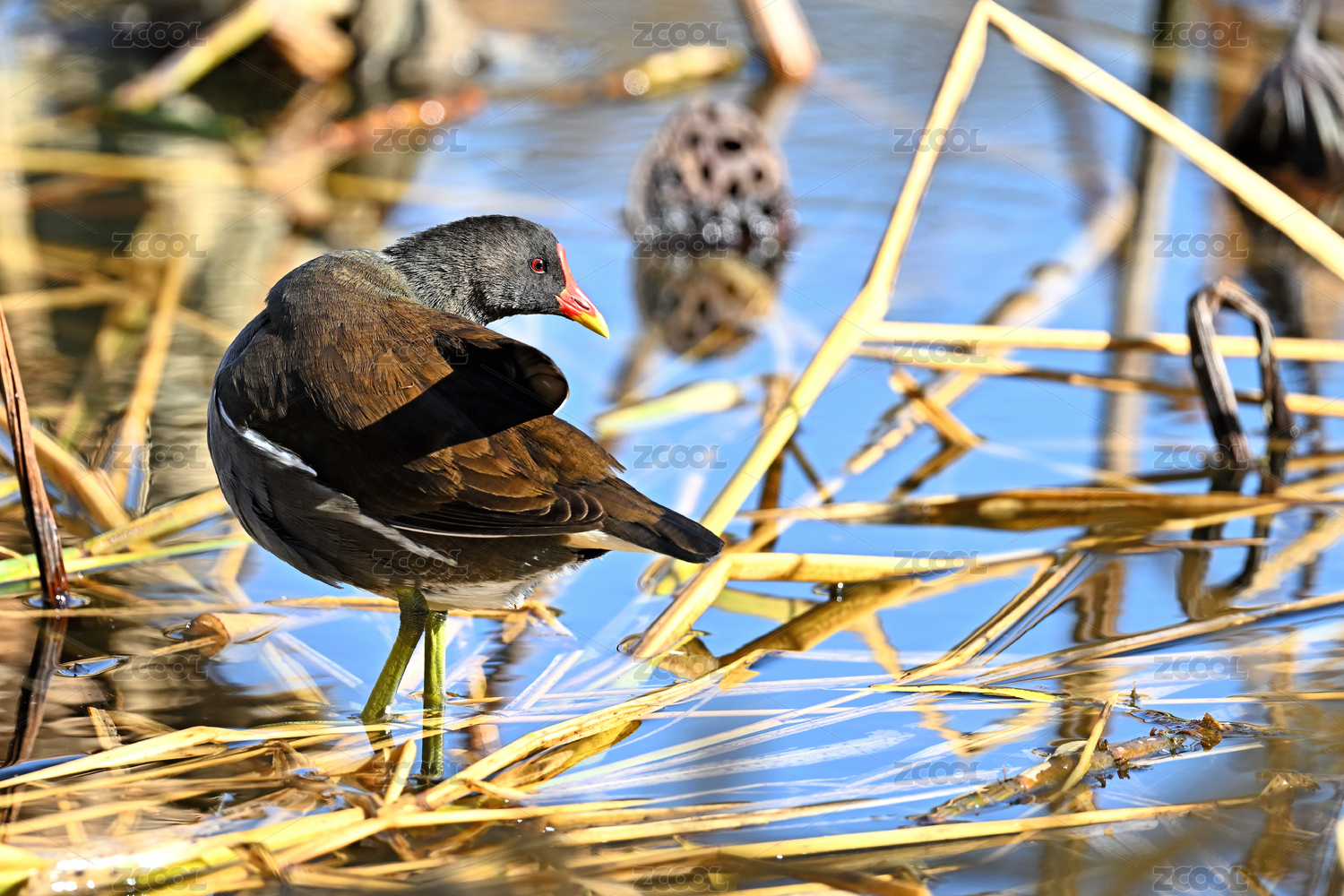 红冠水鸡,水鸟,湿地,芦苇,水生植物,鸟类,动物,自然,生态,环境
