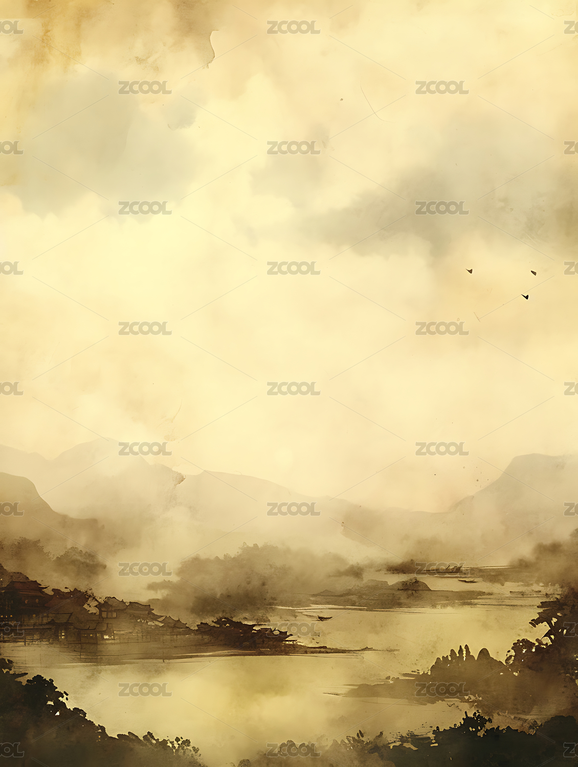 古风水墨高清色彩电商背景