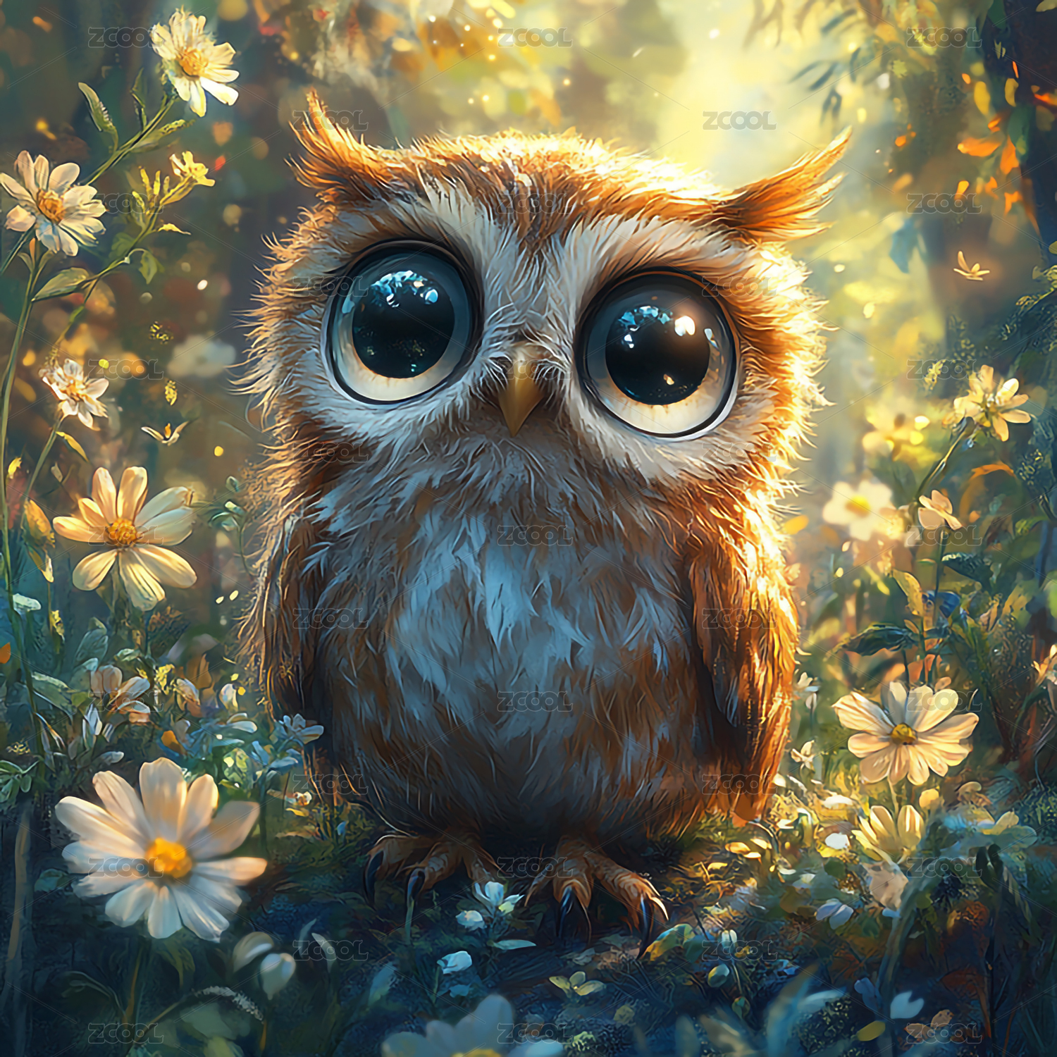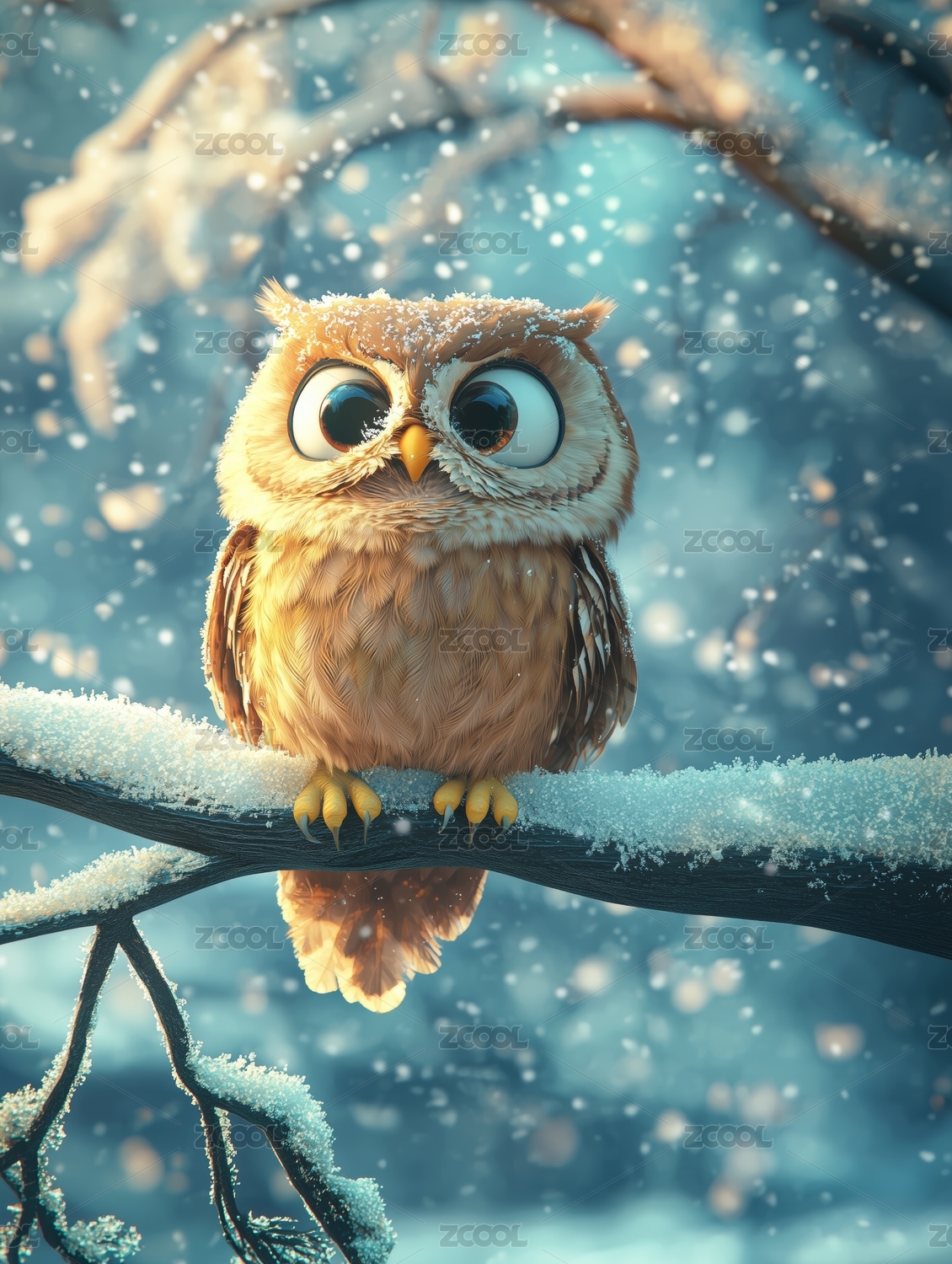 在丛林枝头上站立的卡通猫头鹰头像插画