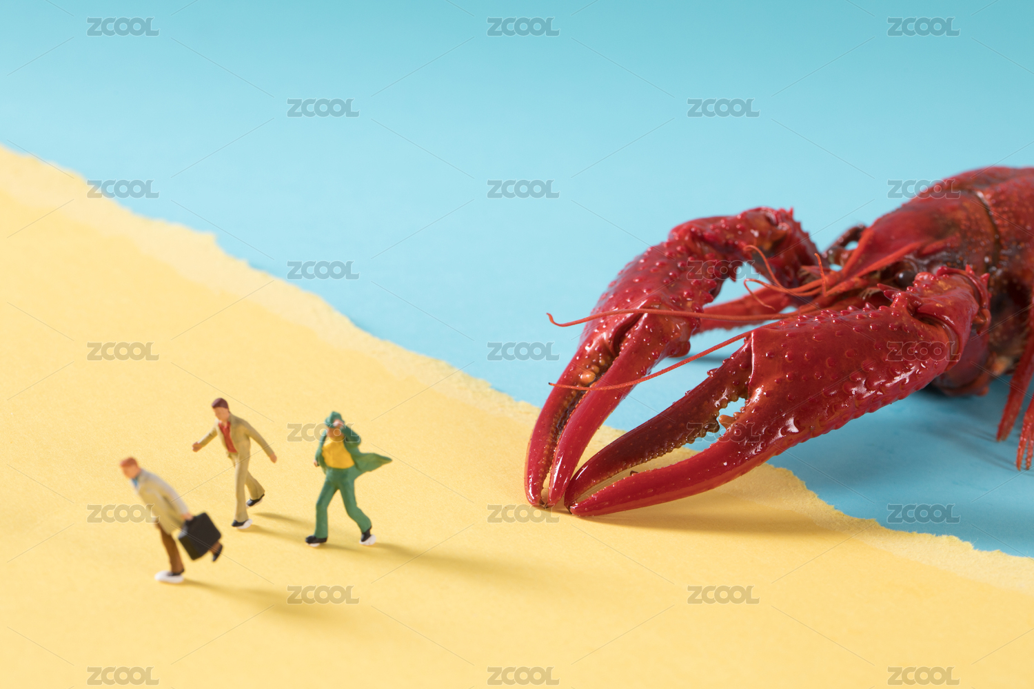 迷你小人,小龙虾,微拍小龙虾,缩微摄影小龙虾,crawfish,黄底,战斗,迷你小人和小龙虾,Crawfish,Crayfish