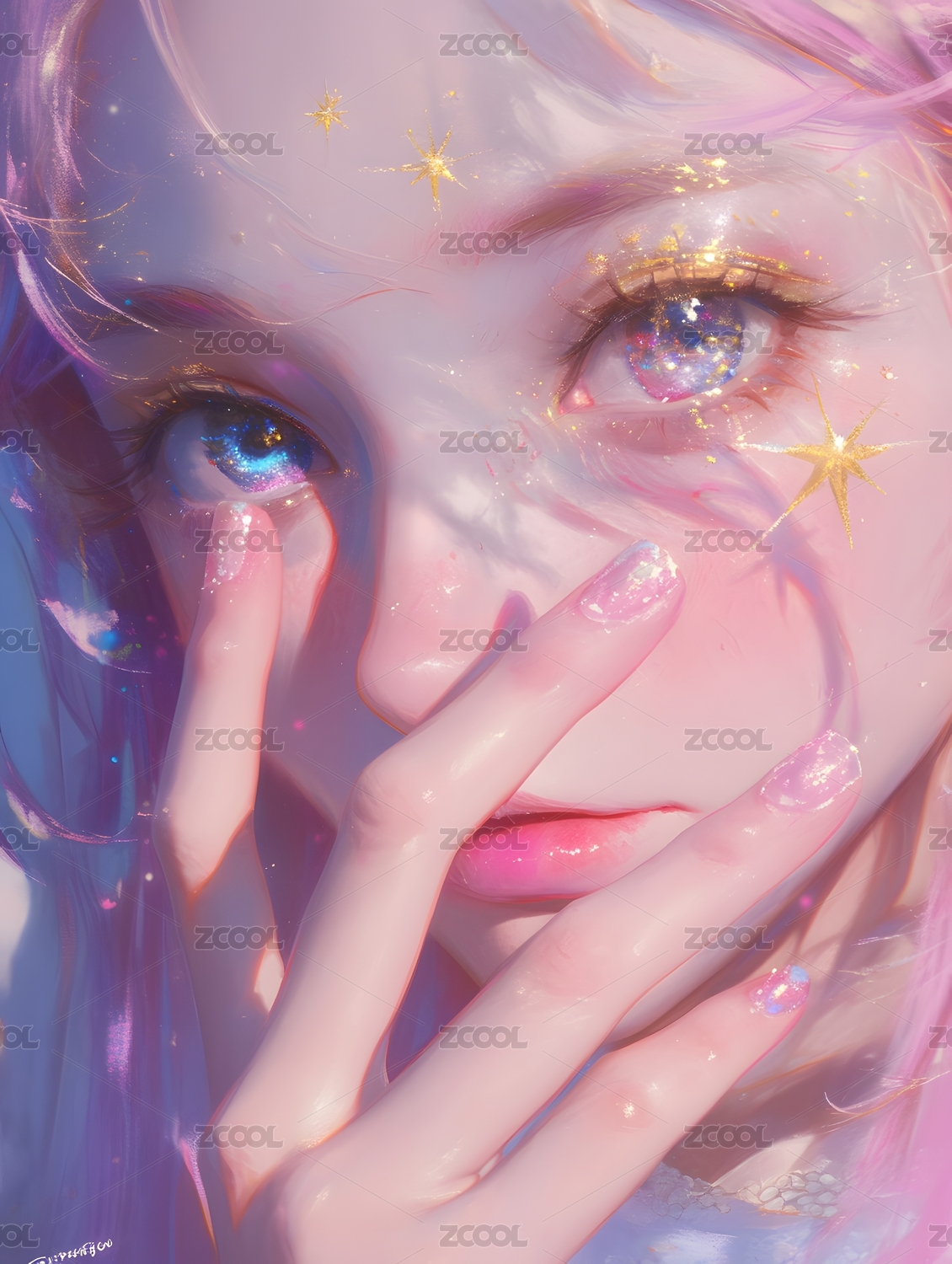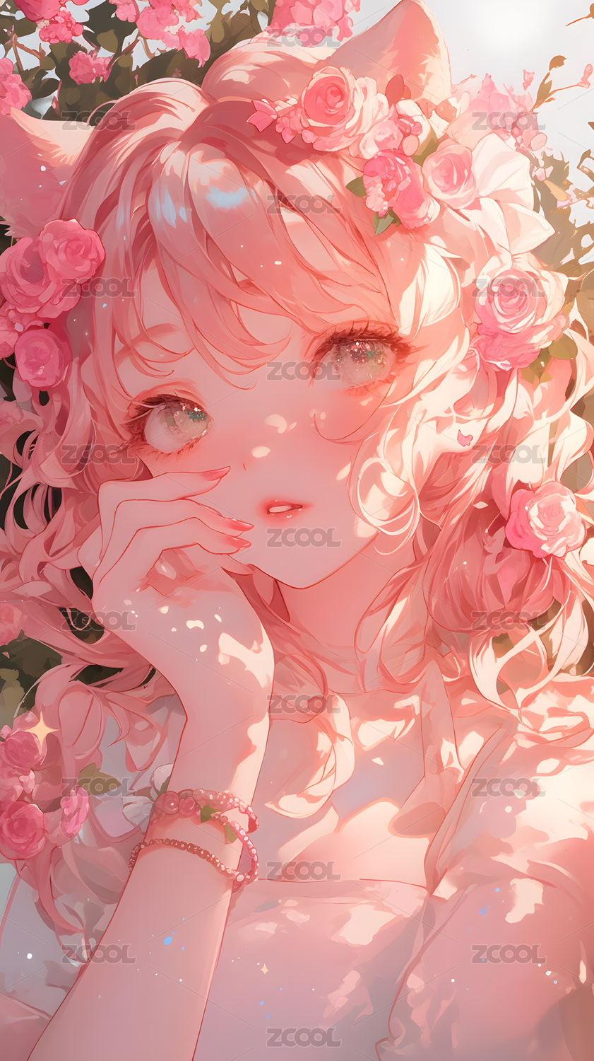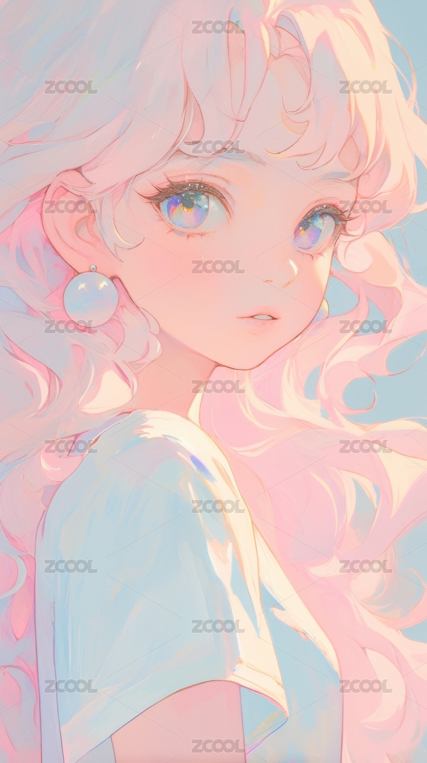 粉红,女孩,头发,头像,闪光,梦幻,漫画