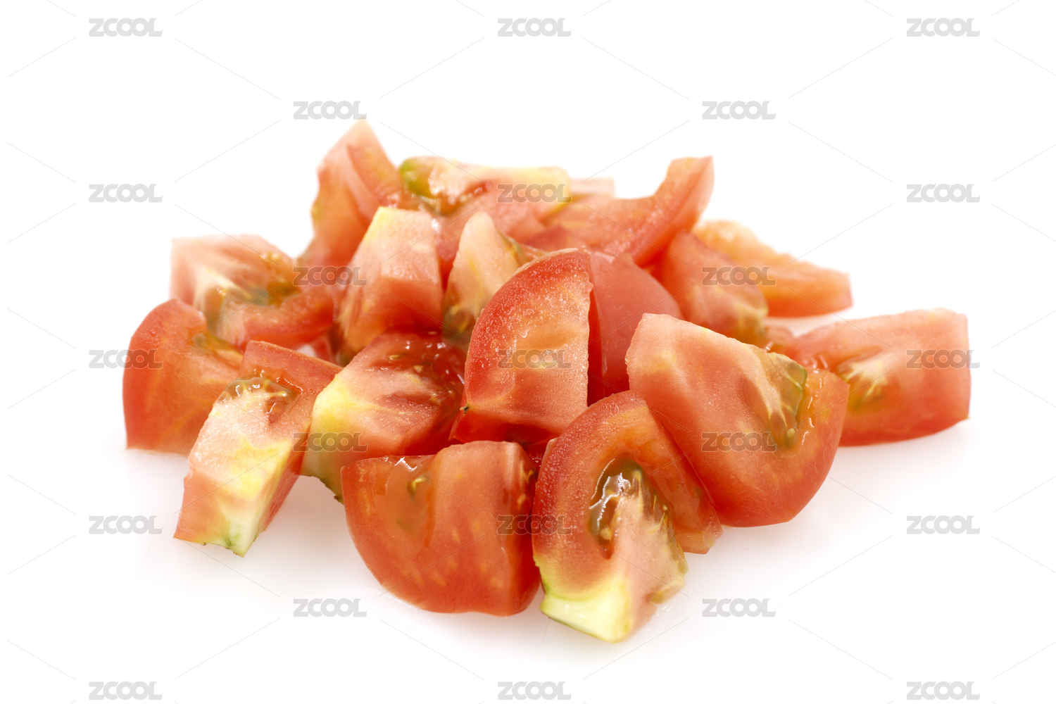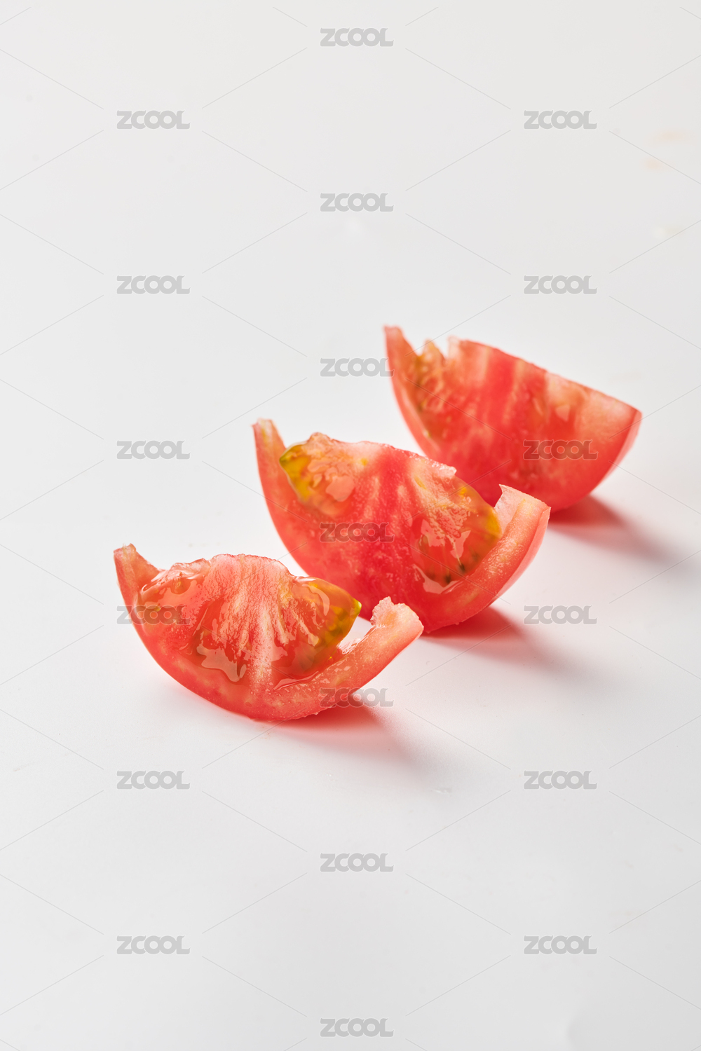 白色背景上的新鲜番茄西红柿切半特写镜头