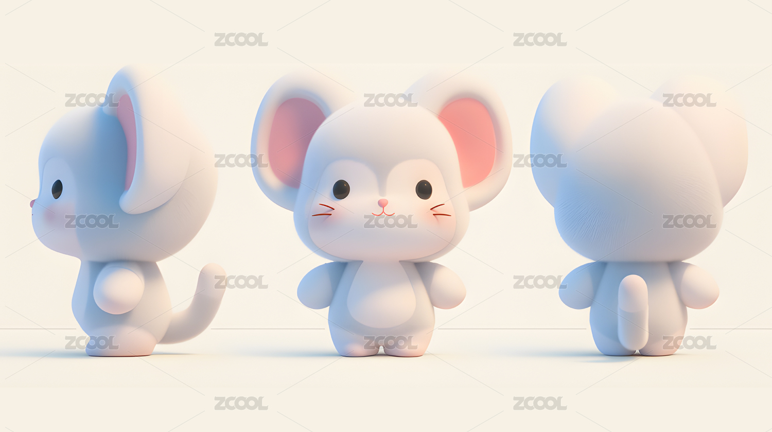 可爱,明丽,角色,设计,有体积,圆润,粉色,3D,卡通,插画