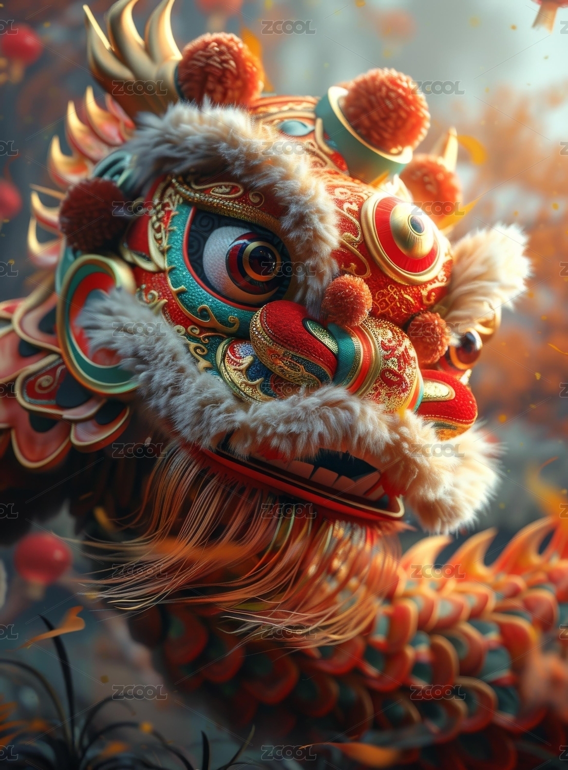 3d立体风格中国年国潮醒狮龙头壁纸插画