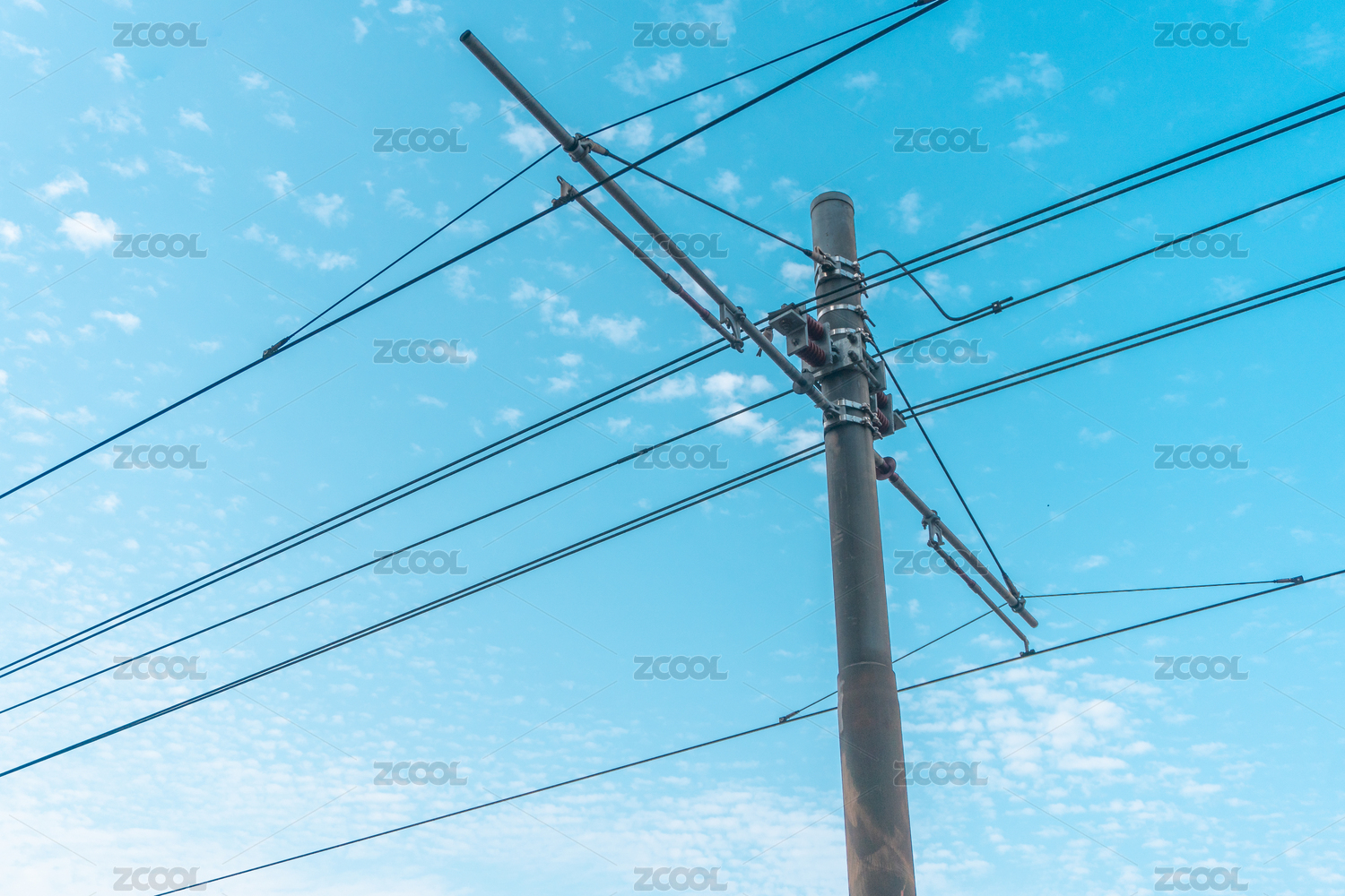 晴朗蓝天下的电线杆仰拍特写