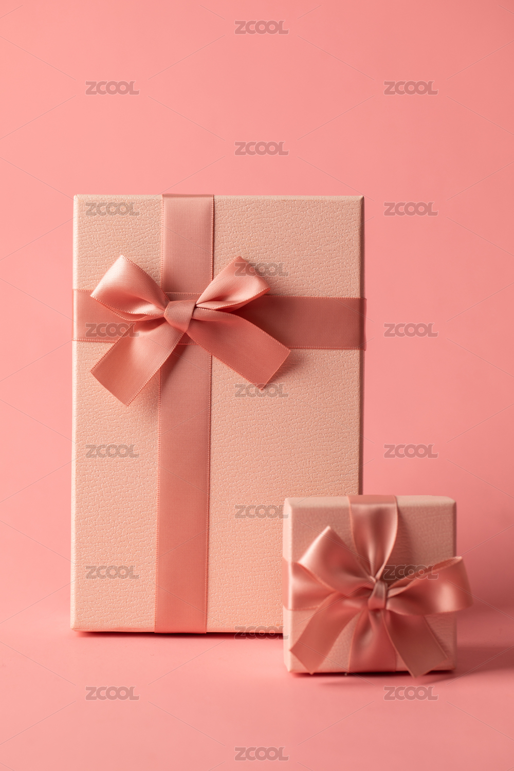 有一个粉红色的礼物盒子上面有一个银色的蝴