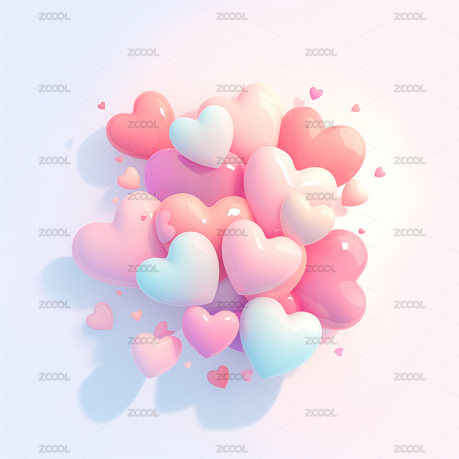 3D彩色心形气球堆