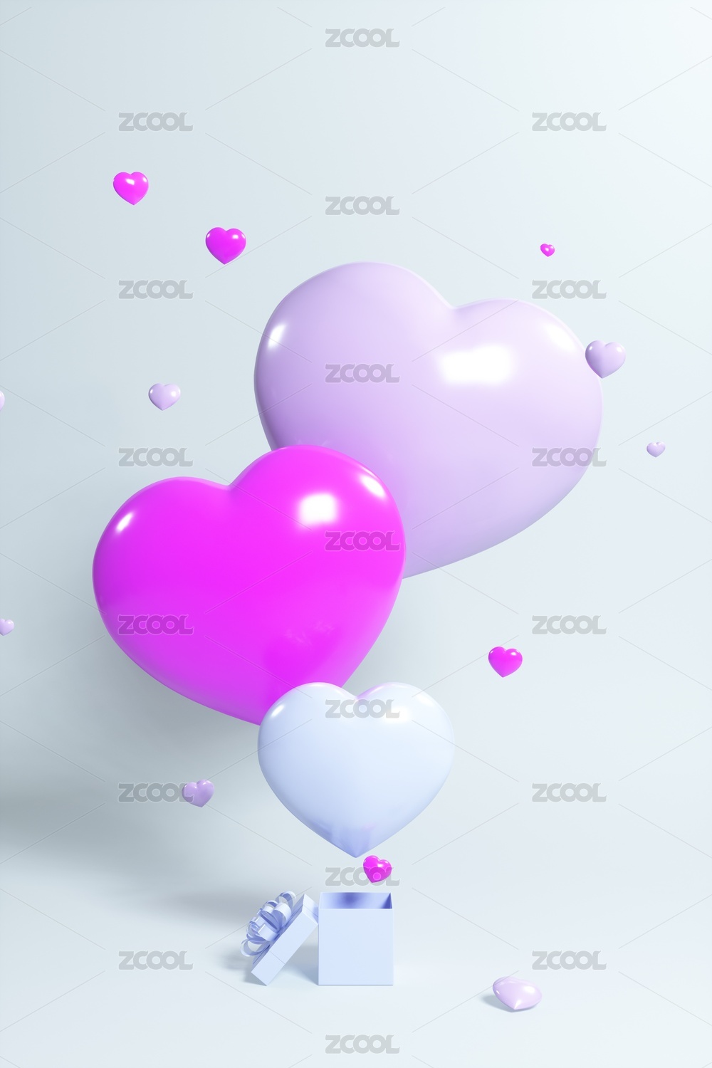3D渲染的礼盒爱心场景图