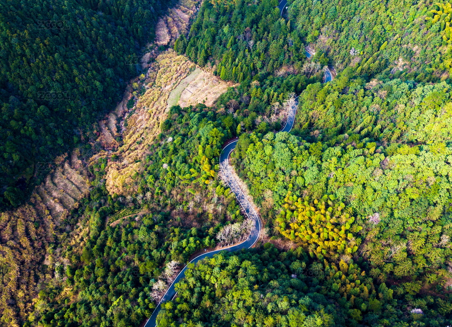 盘山公路,公路,曲折,曲线,弯曲的,树林,松树,森林,树木,林场