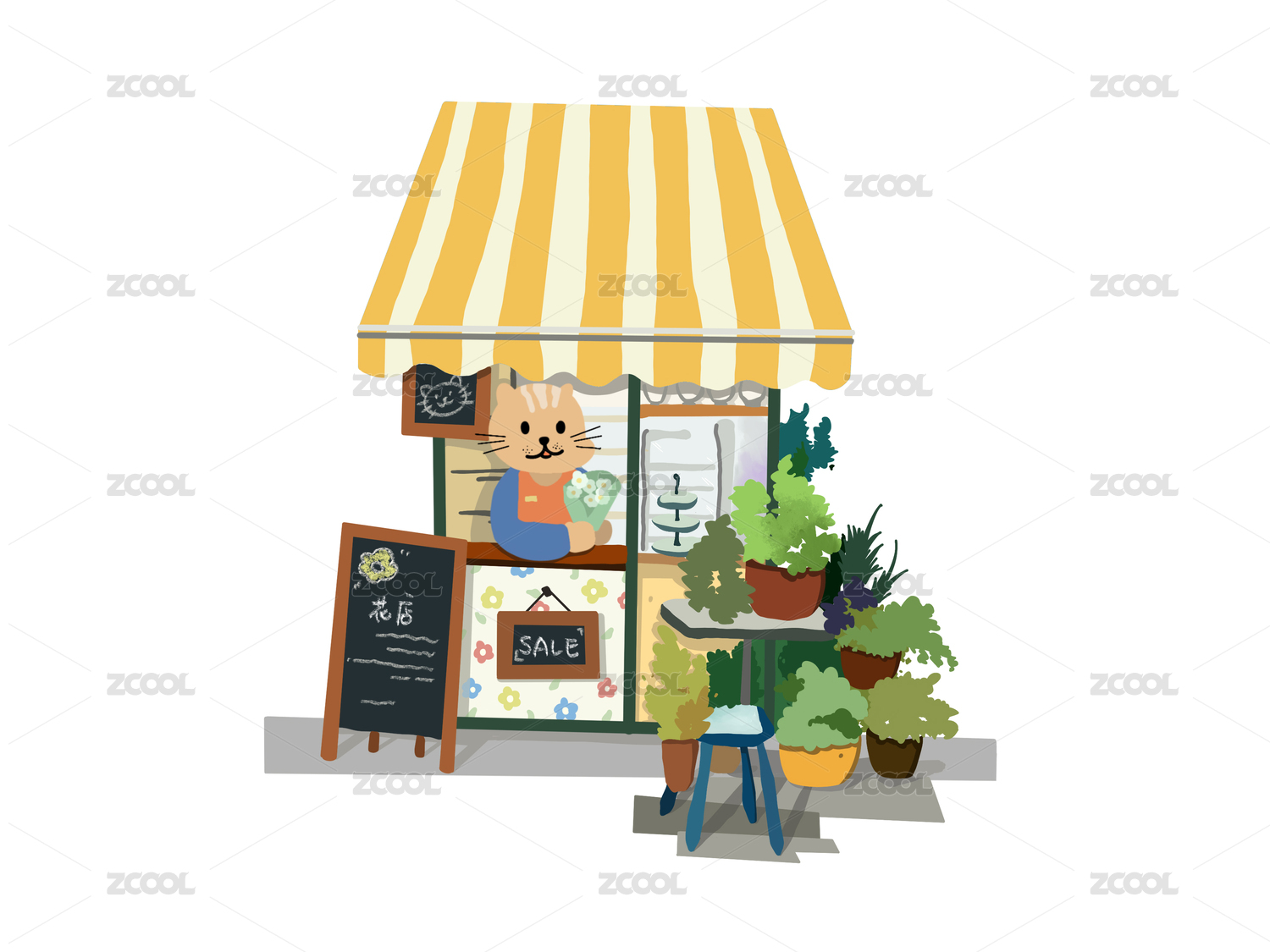 花,花束,植物,花店,店铺,无人,卖花,鲜花,插画,手绘