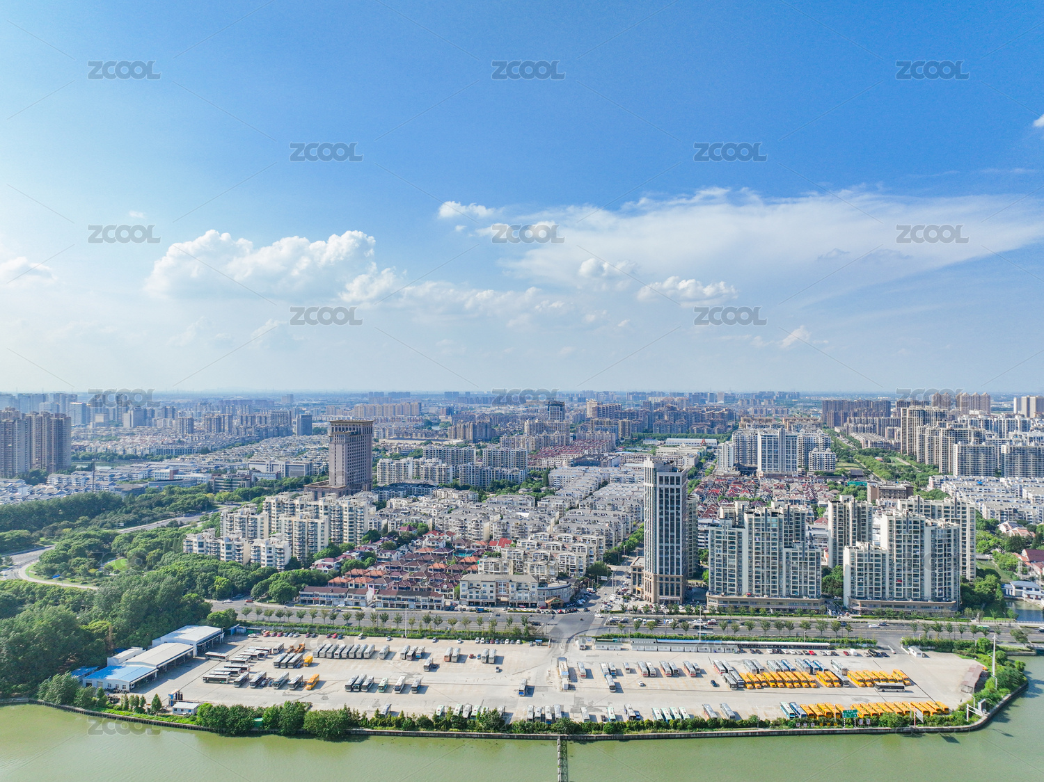鸟瞰安徽省郎溪县城,蓝天白云生态美
