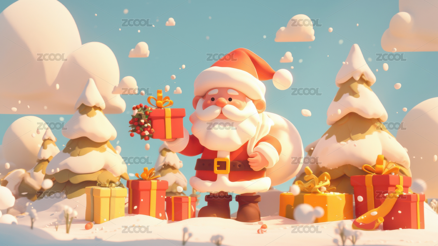 圣诞老人在雪地上双手举着礼物的顶视图视角
