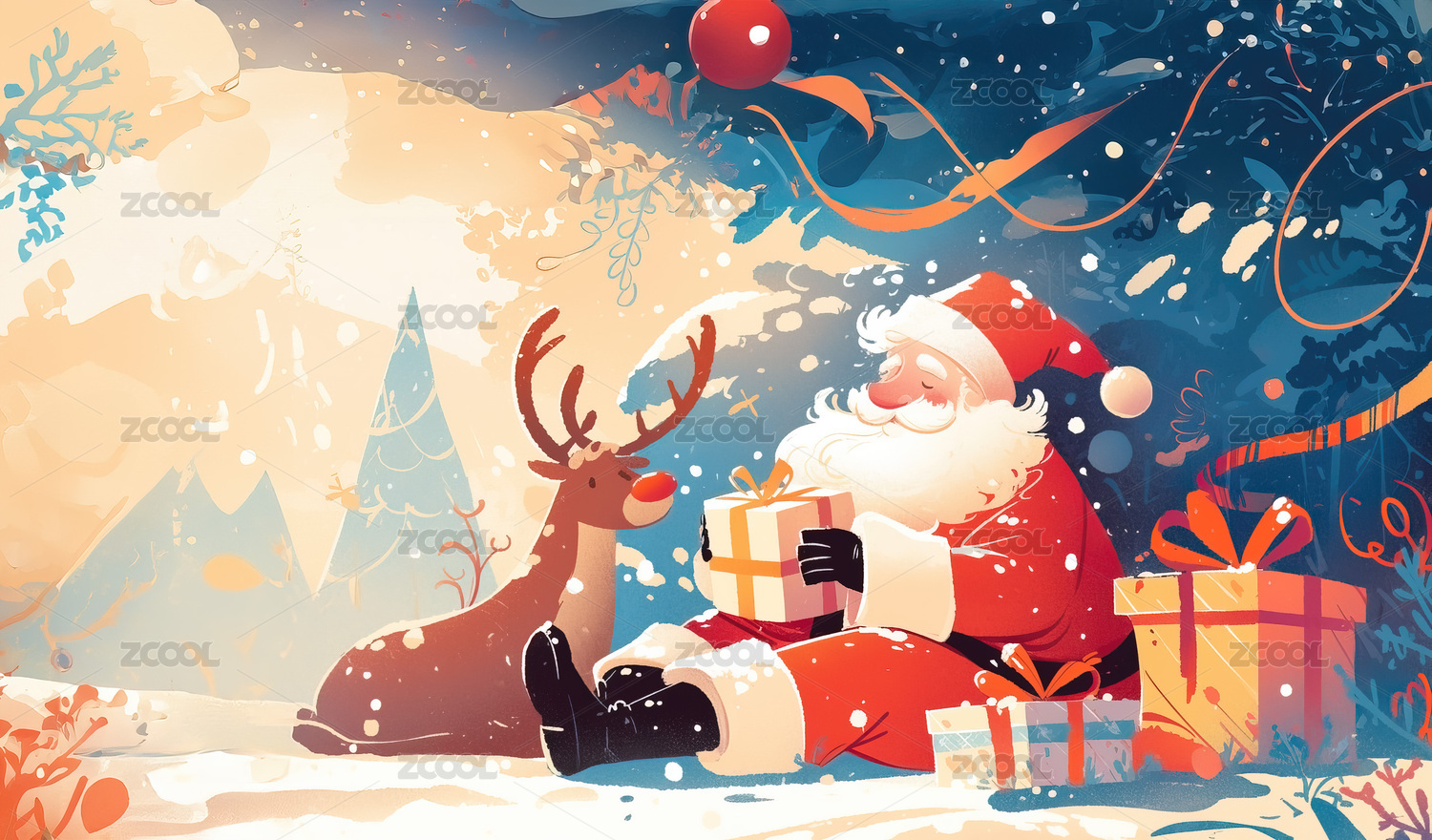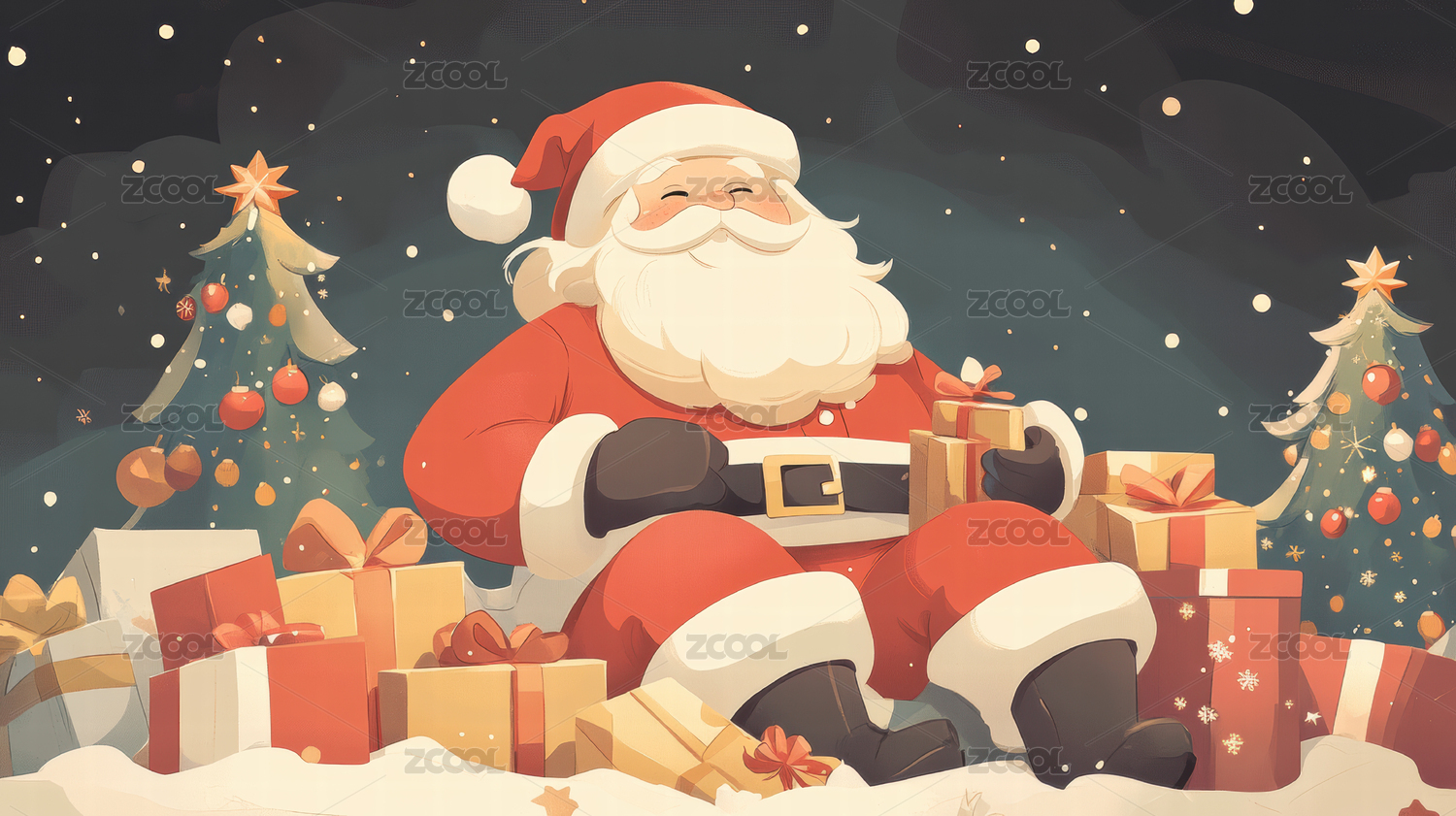 扁平化插画复古圣诞老人送礼物服装印花图案