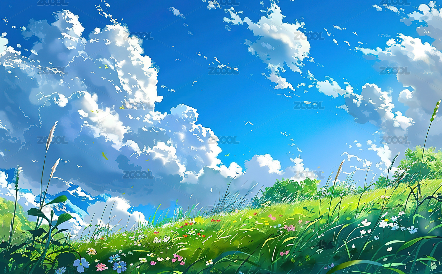 复古日漫风景草地公园自然户外旅游夏季旅行