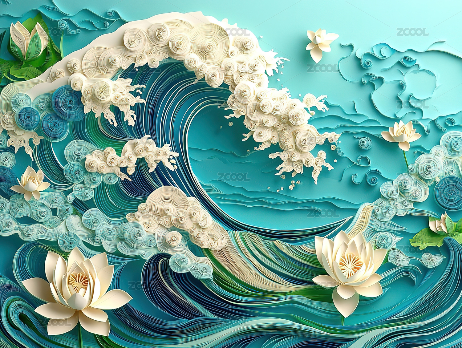 艺术,液体,创造力,蓝色,概念,花,背景,插画,叶