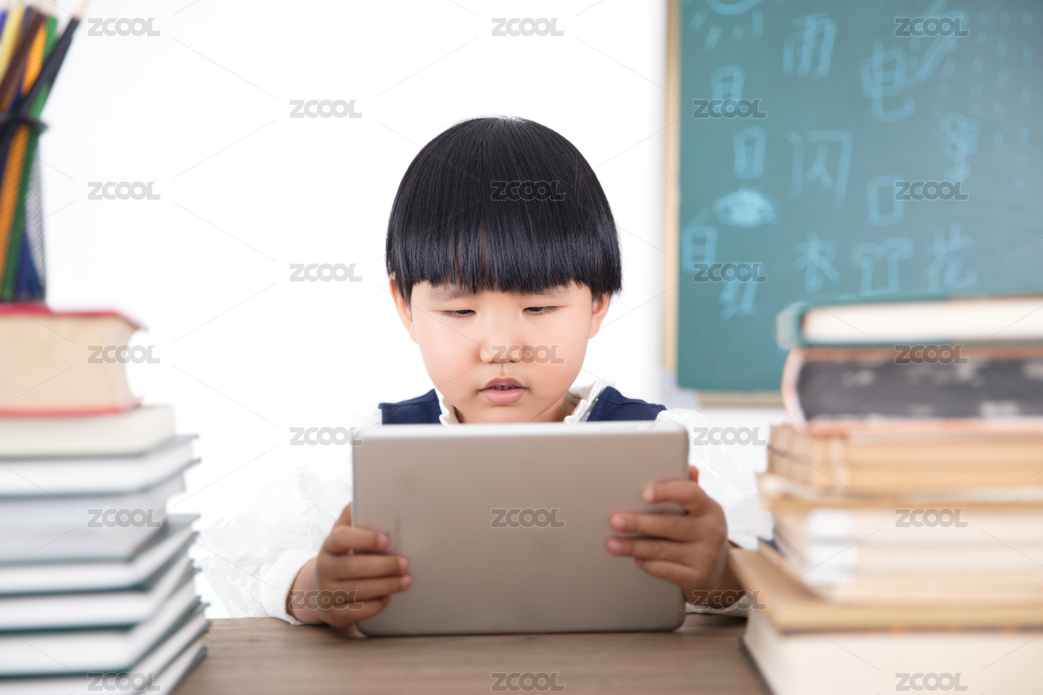 小姑娘使用iPad在线学习