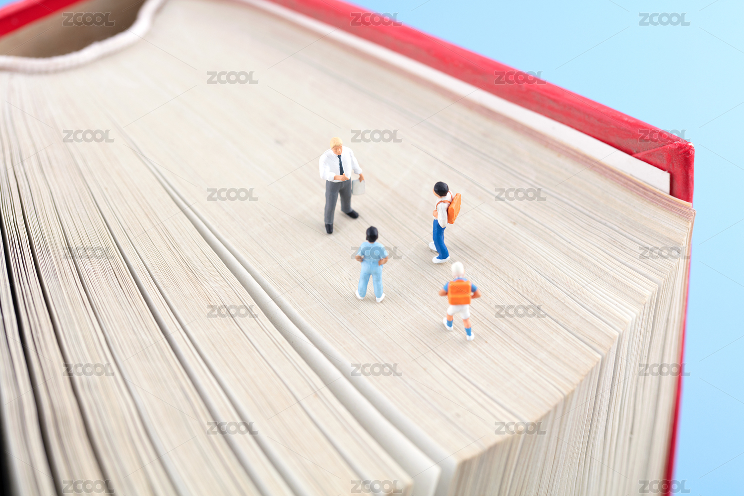 书本上一排微缩的小学生人偶模型