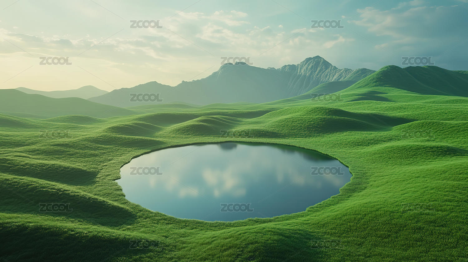绿色的草地和湖
