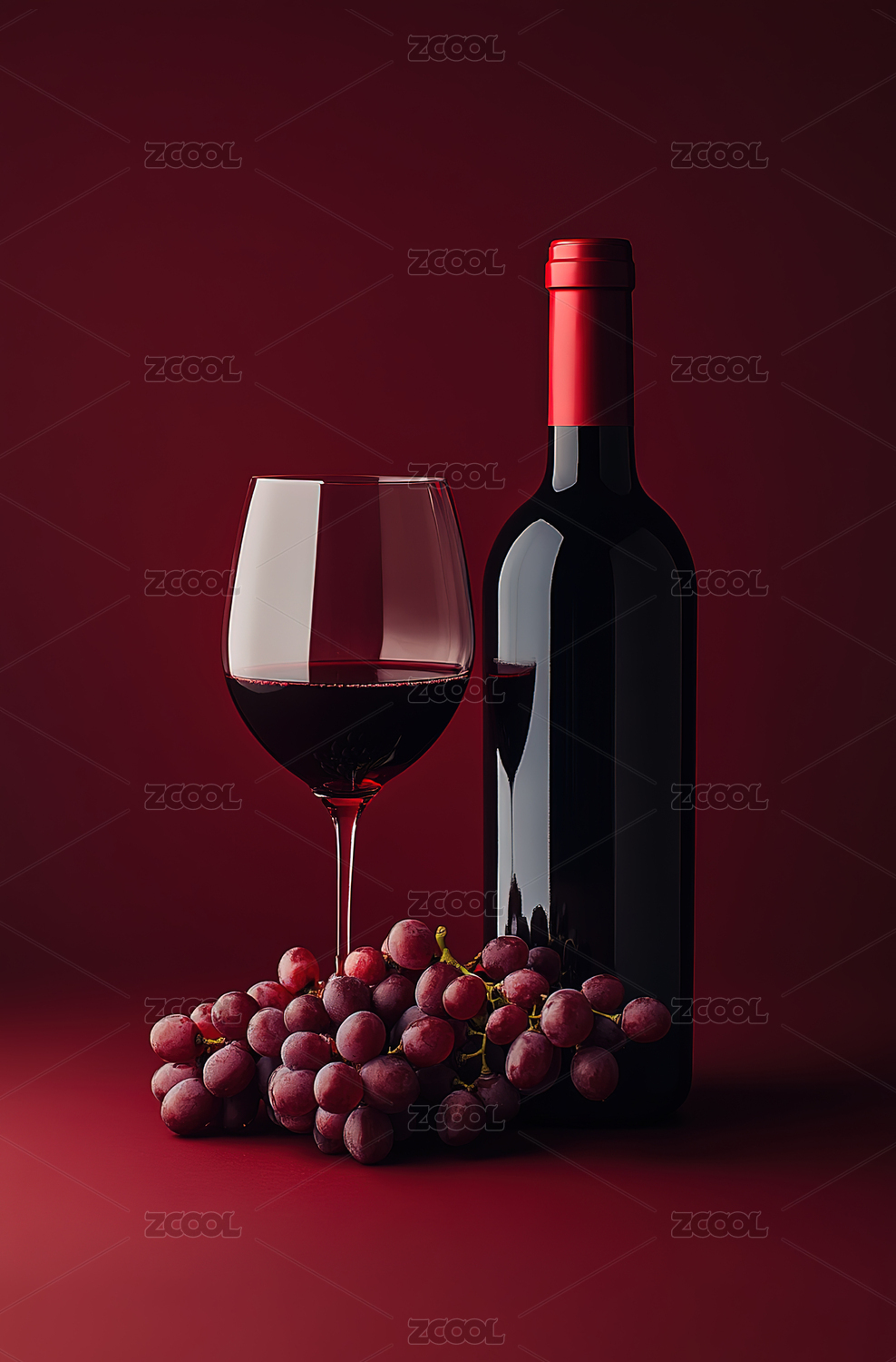 红色背景下的红酒和红酒