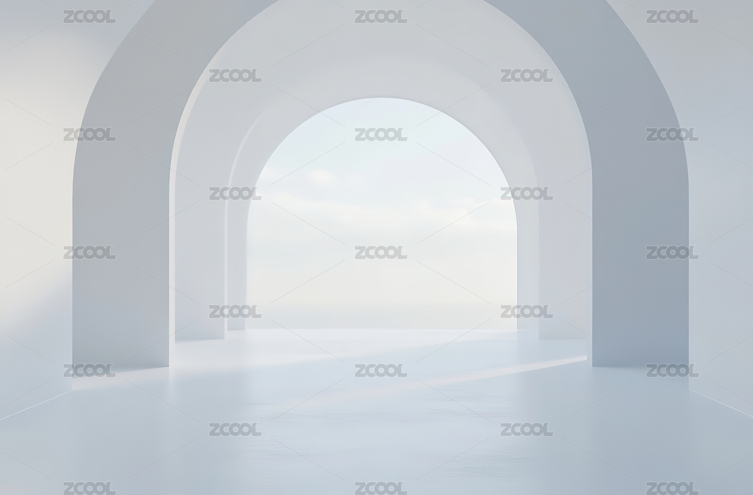 AI数字艺术,建筑,室内,走廊,白昼,拱门,背景,现代,未来,教堂