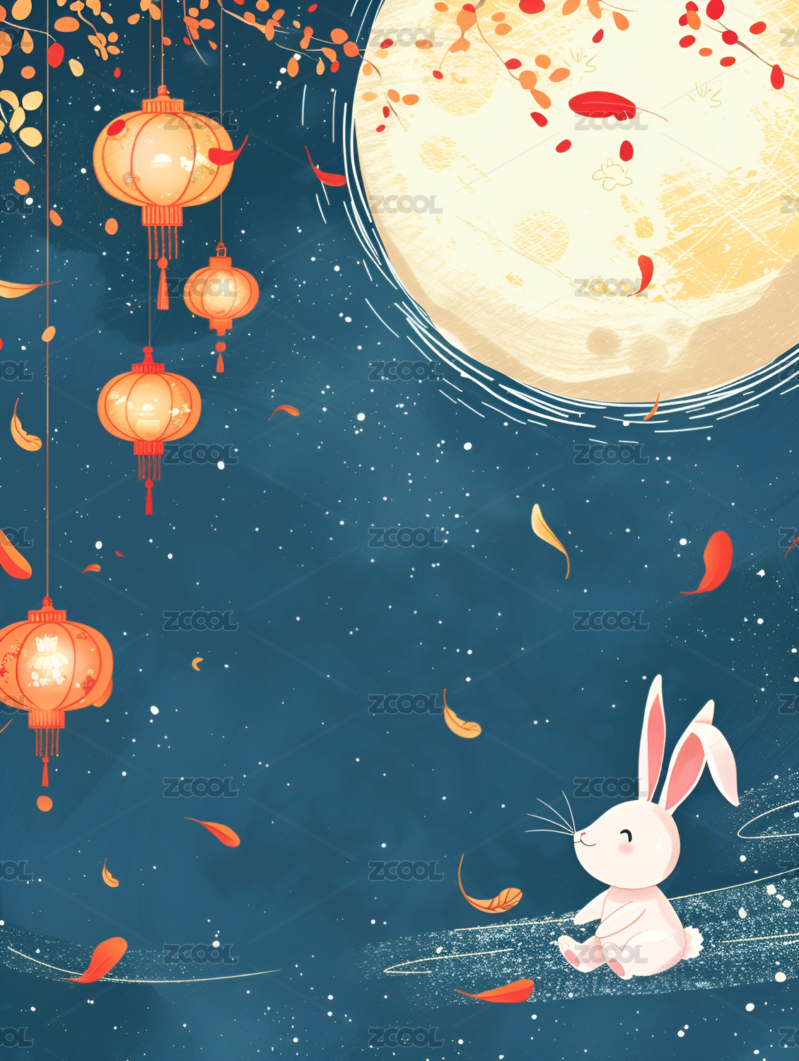 中秋节圆月和玉兔插图