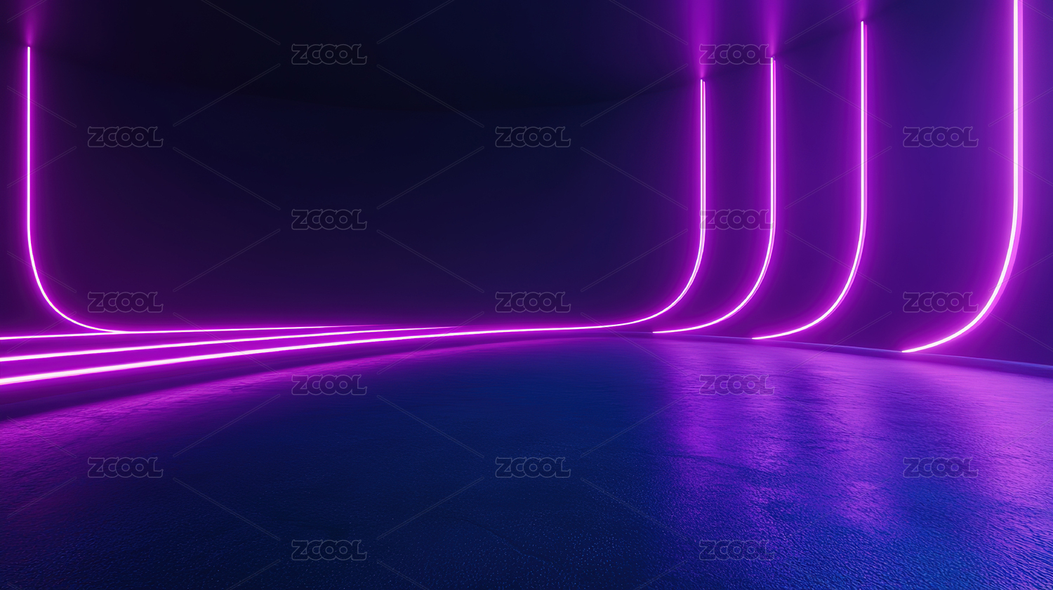 紫色霓虹光带环绕的未来感通道