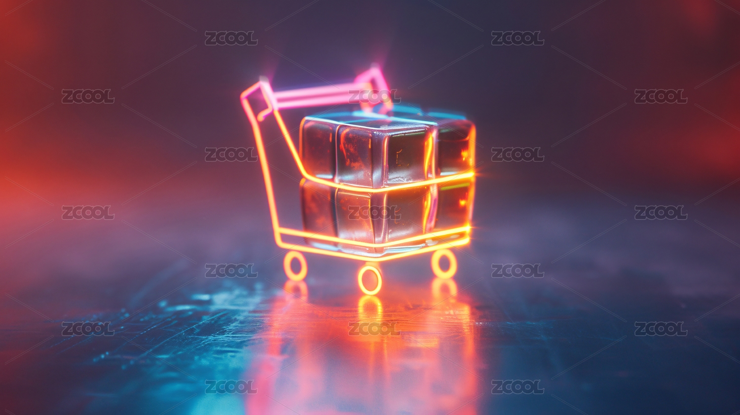 霓虹灯购物车未来科技感