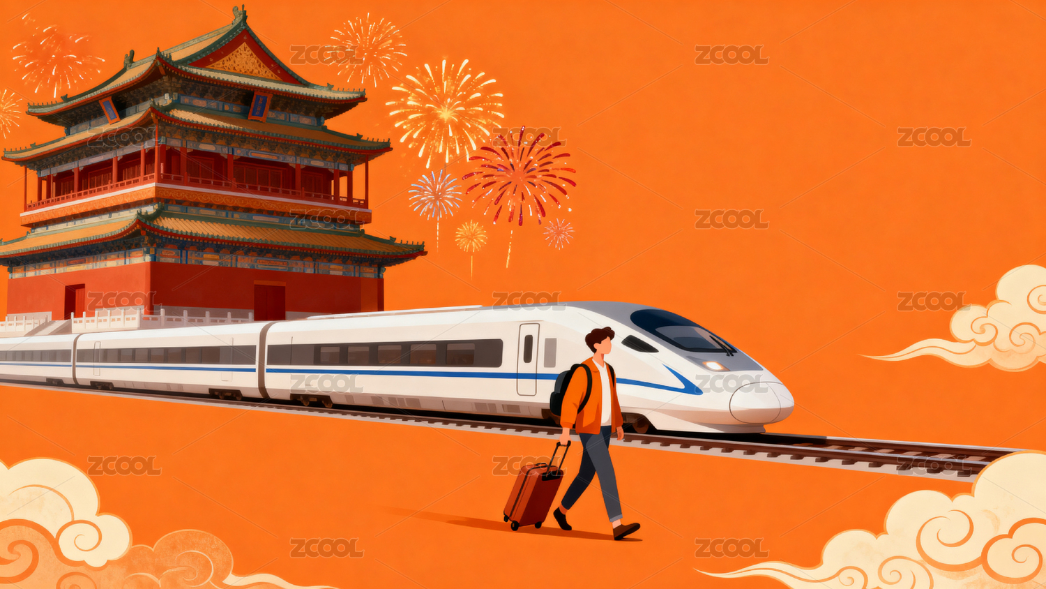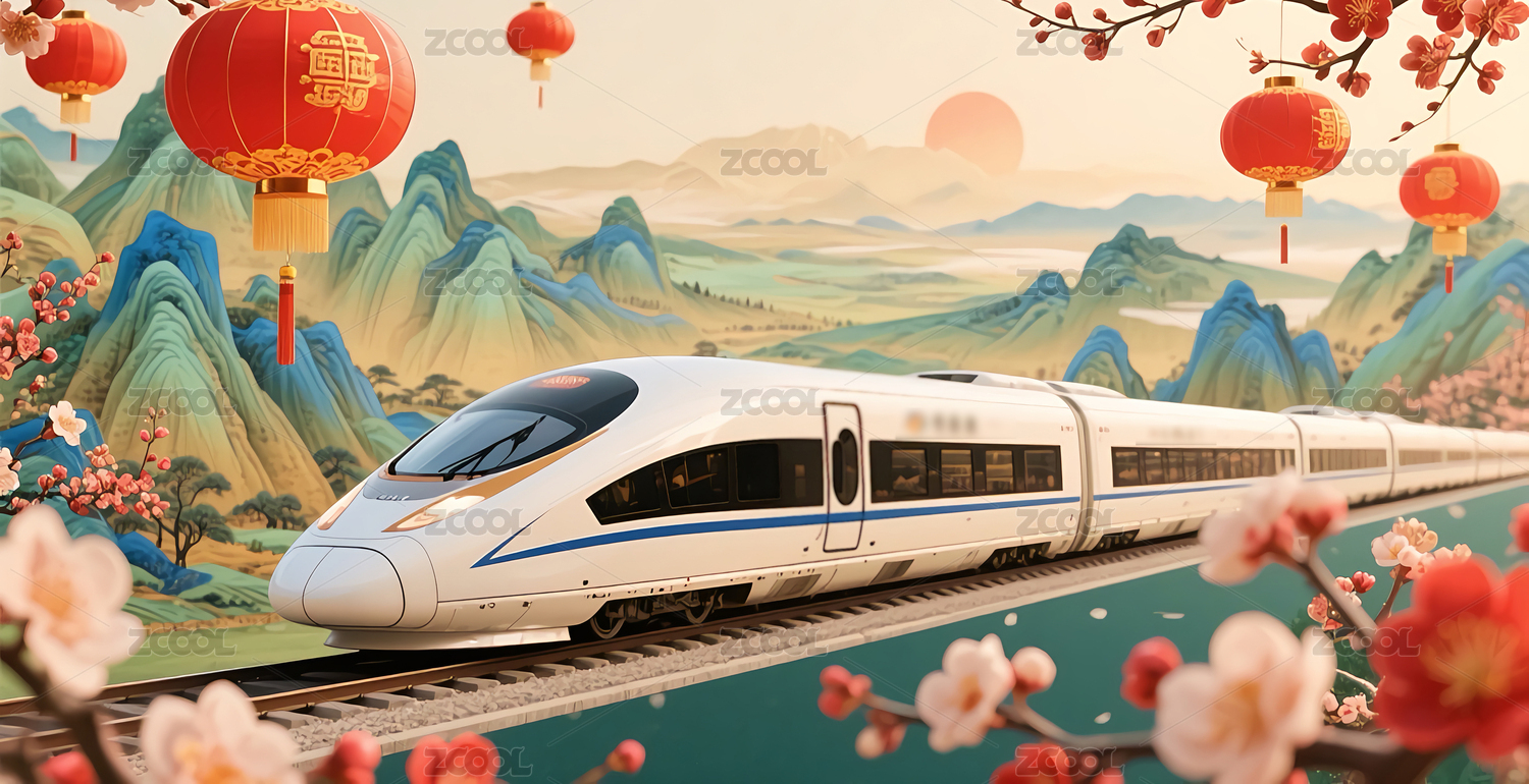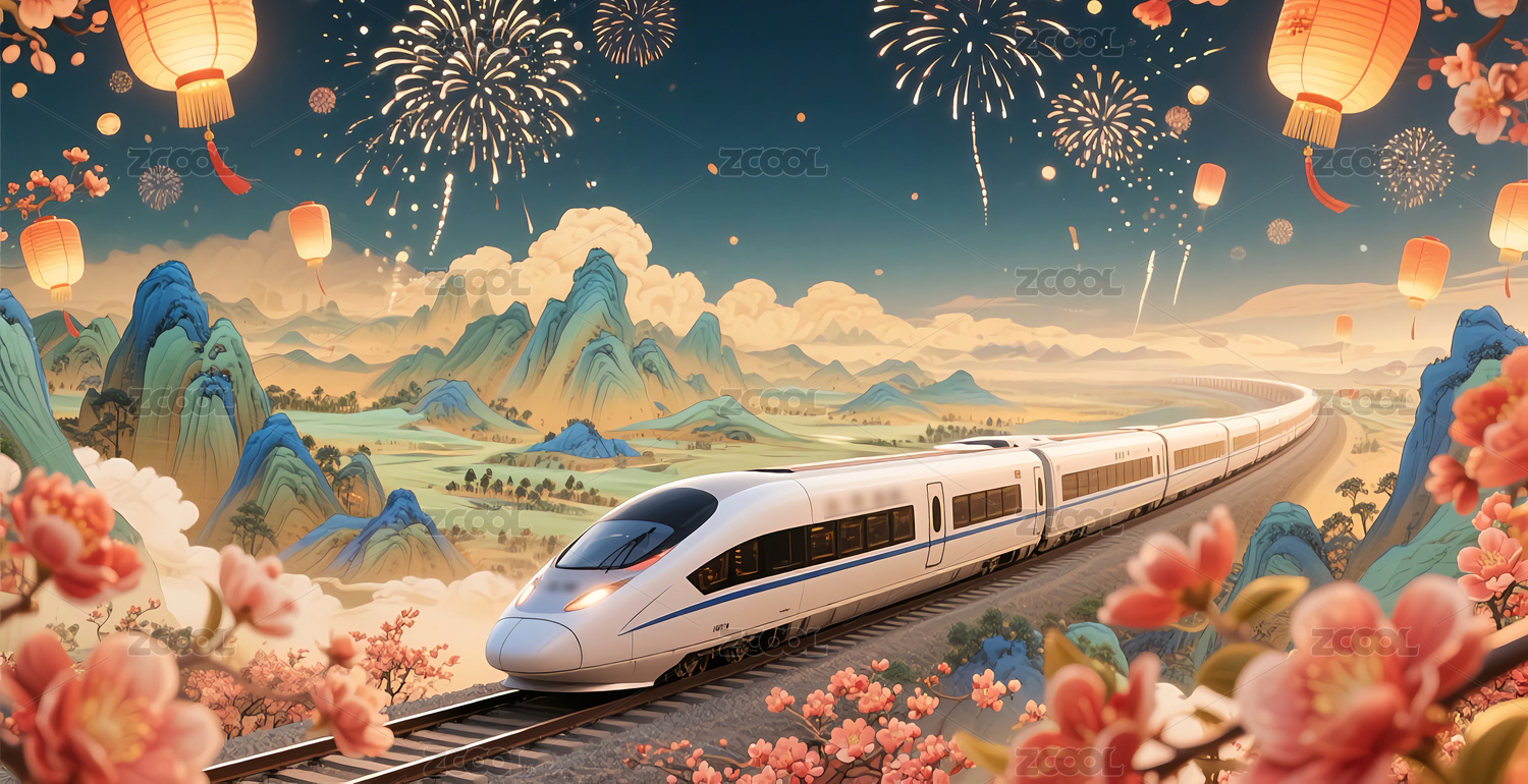 传统节日高铁运输主题插画