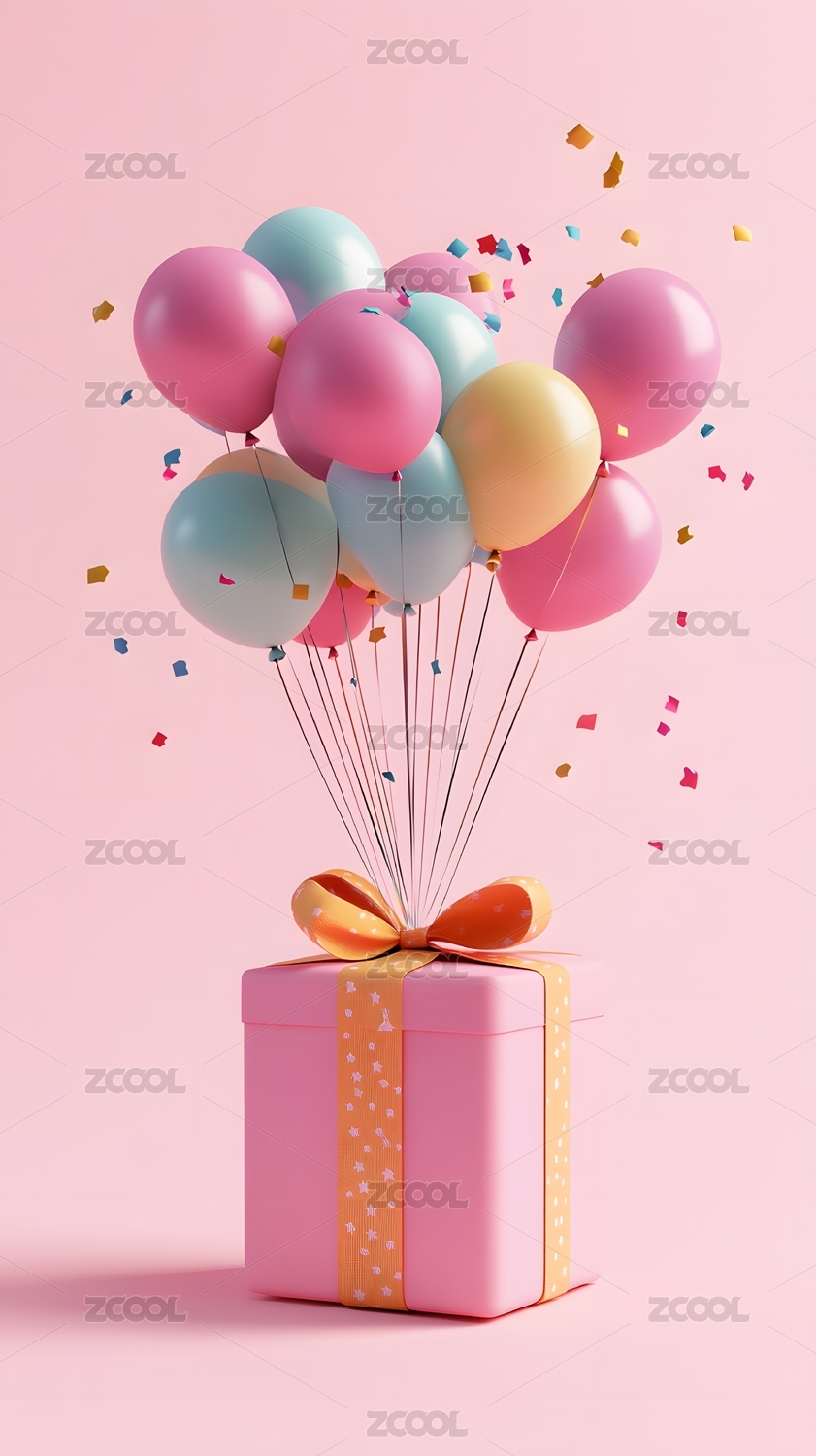 粉色礼盒与气球装饰
