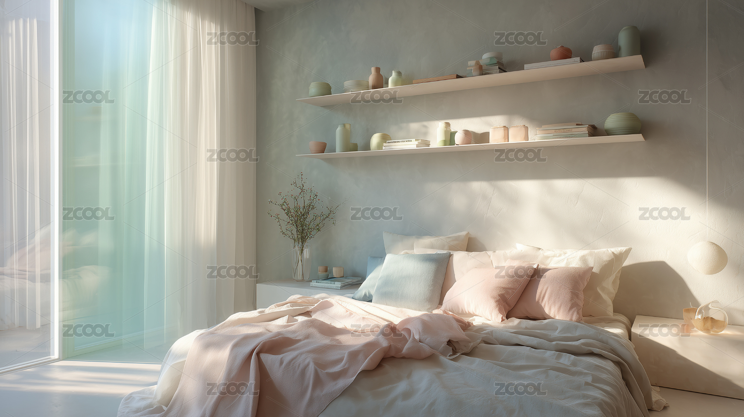 柔软棉被与柔和抱枕点缀的温馨卧室