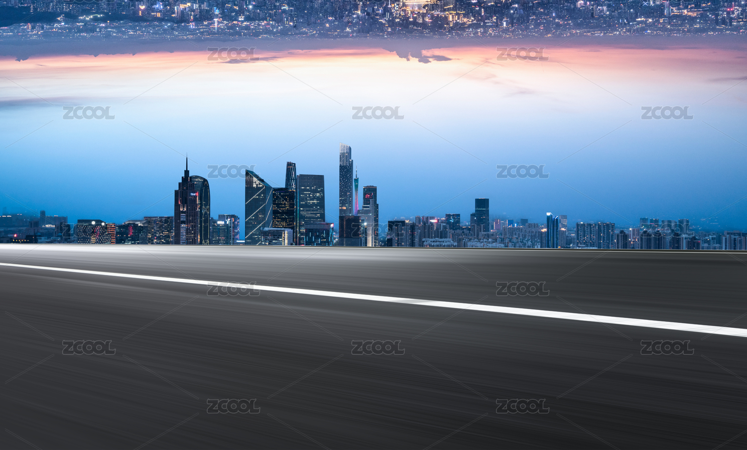 中国广州柏油公路与现代城市天际线