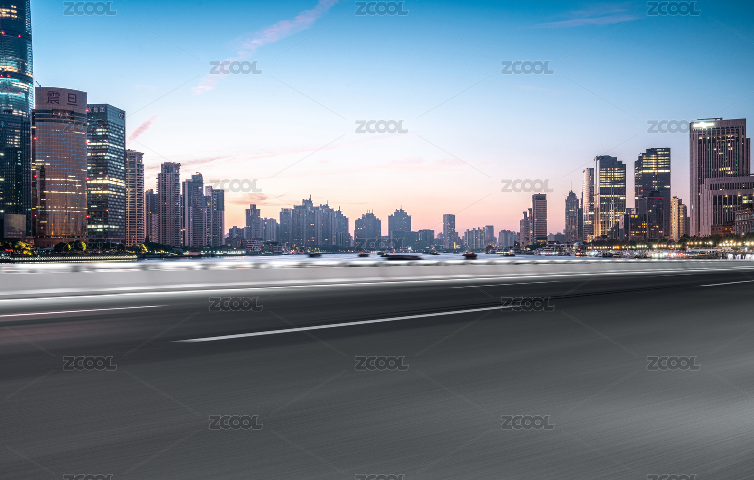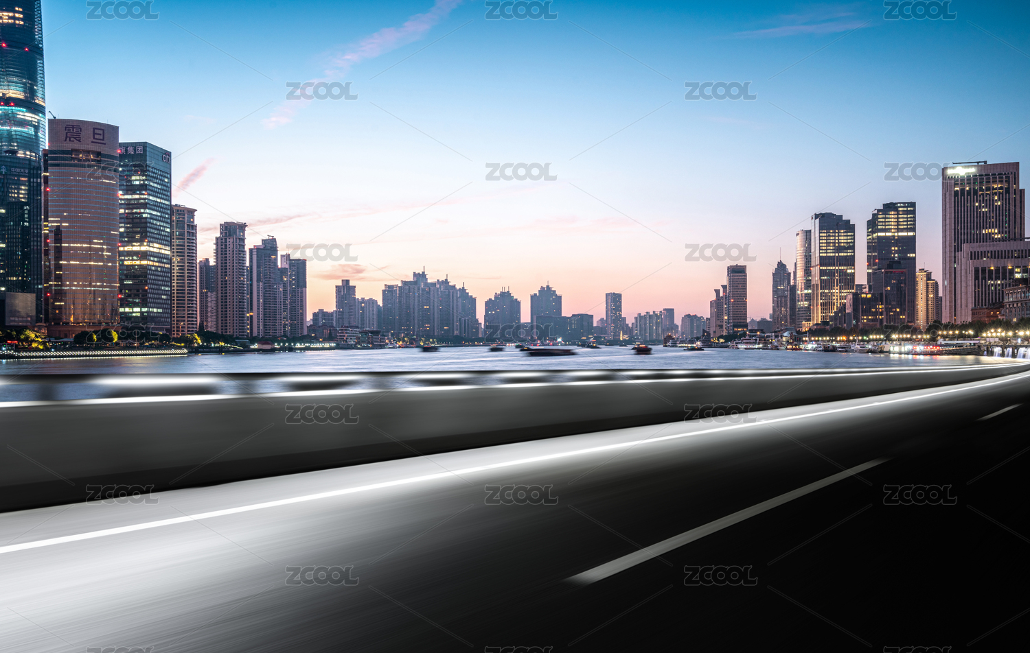 平视角上海新城CBD天际线公路