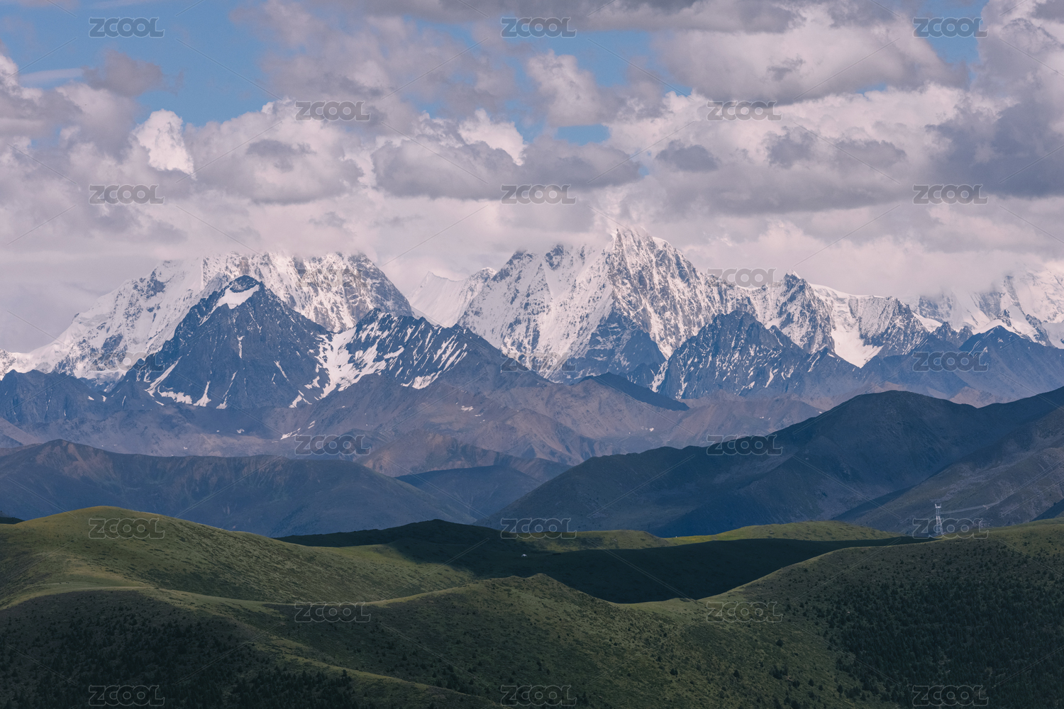 中国四川甘孜州川西居里寺垭口贡嘎雪山风光
