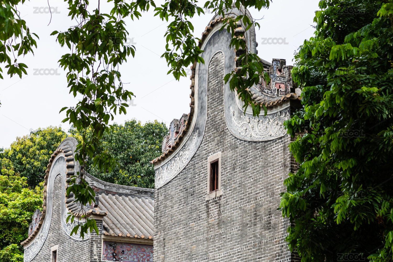 广州海珠湿地公园岭南古建筑镬耳屋墙头