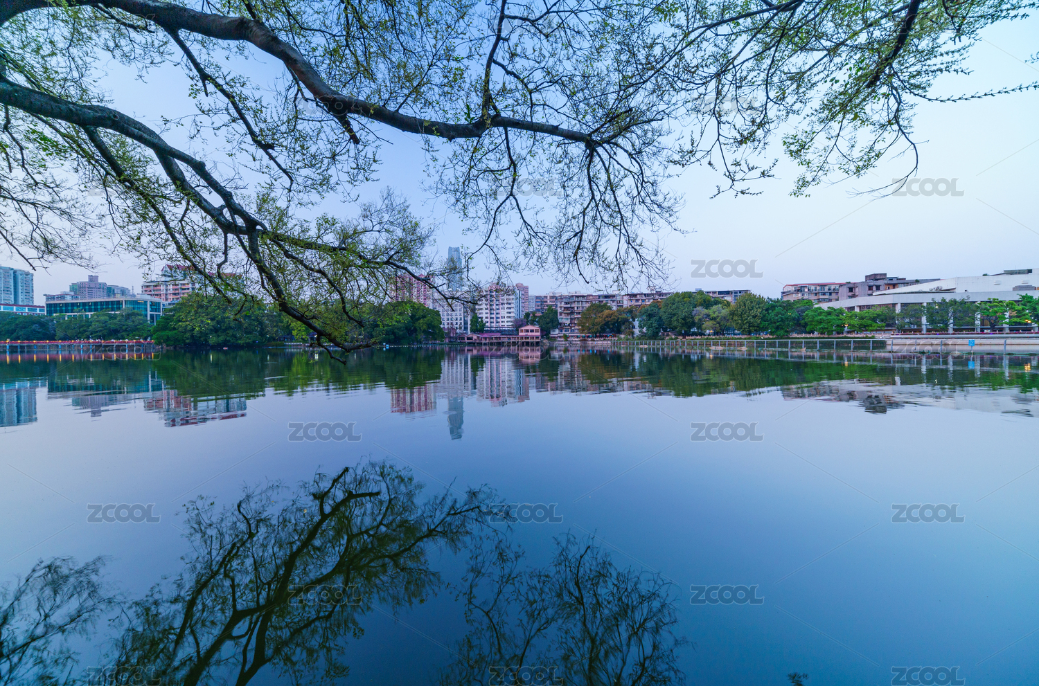 广西南宁市人民公园湖泊夕阳落日全景长图