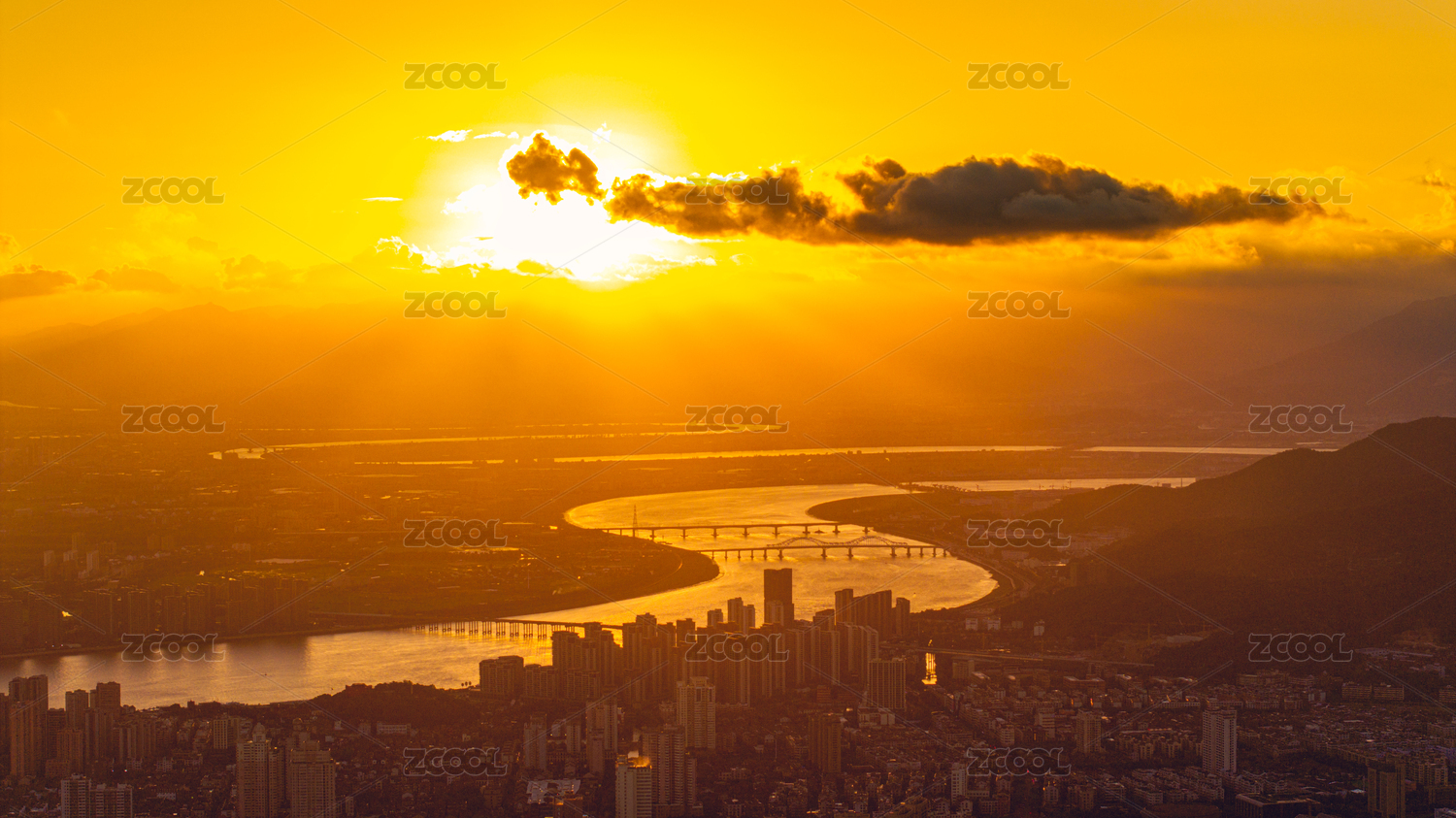 日出时刻的临海市