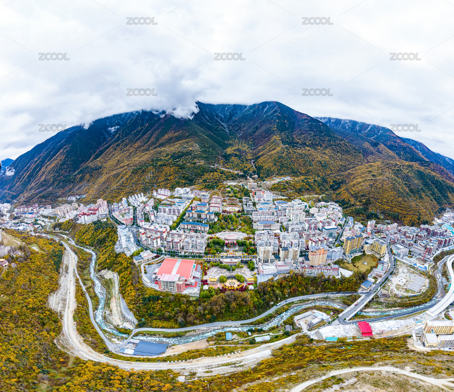 四川省阿坝州理县县城全景航拍