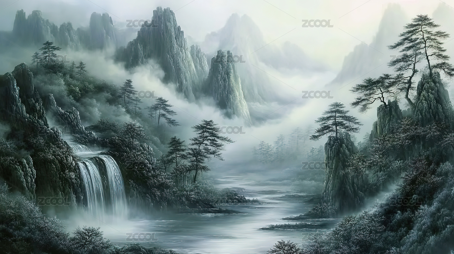 传统,线条,国风,流动,云,复古风格,烟雾,植物,河流,背景